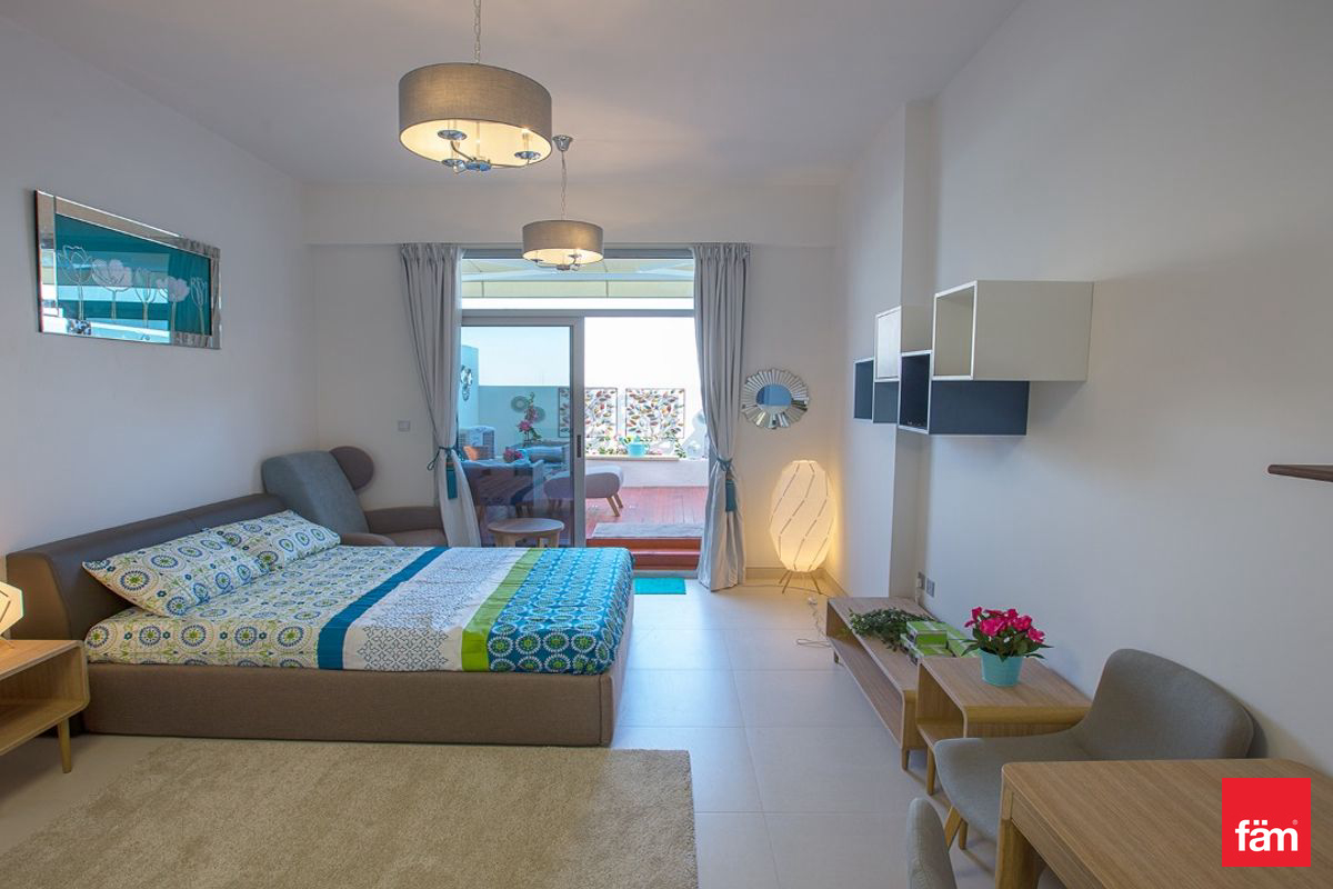 This well-designed studio features an open kitchen layout complemented by built-in wardrobes and a private balcony, offering a comfortable and functional living space. The apartment is equipped with air conditioning to ensure year-round comfort.