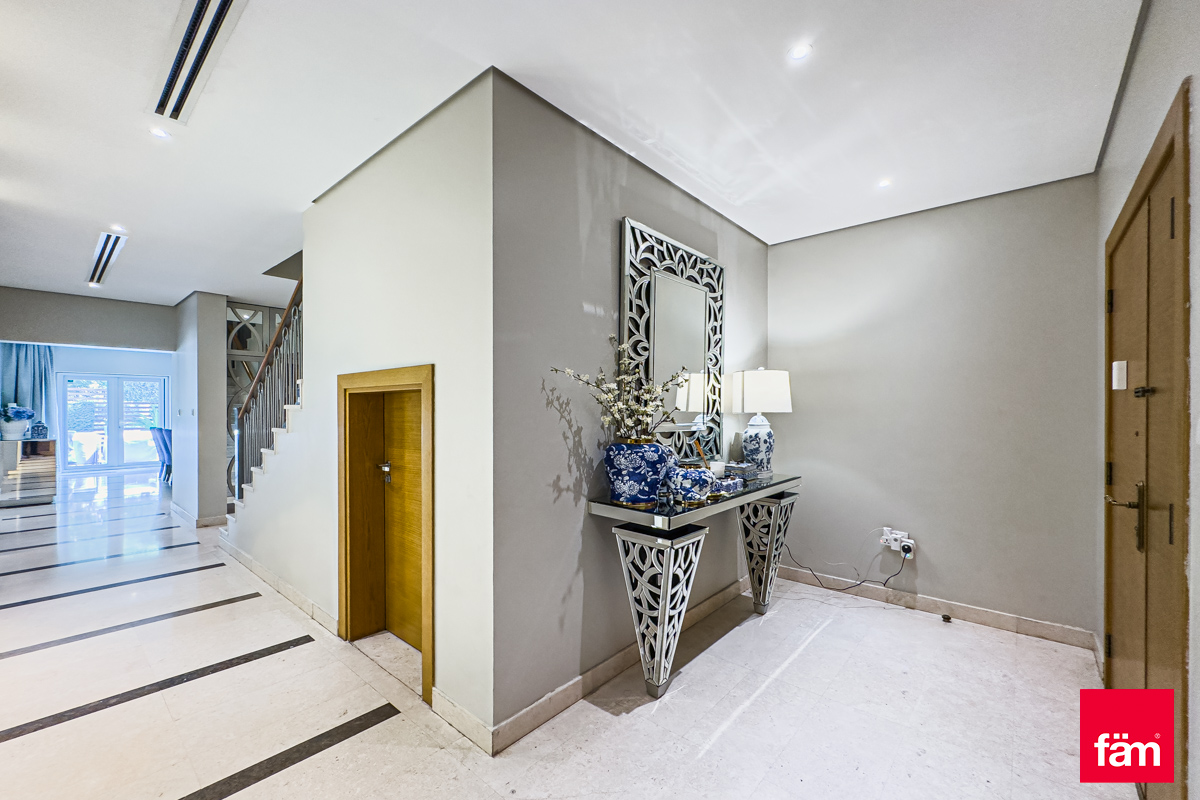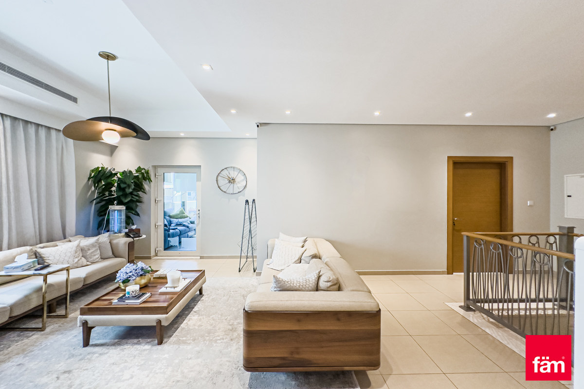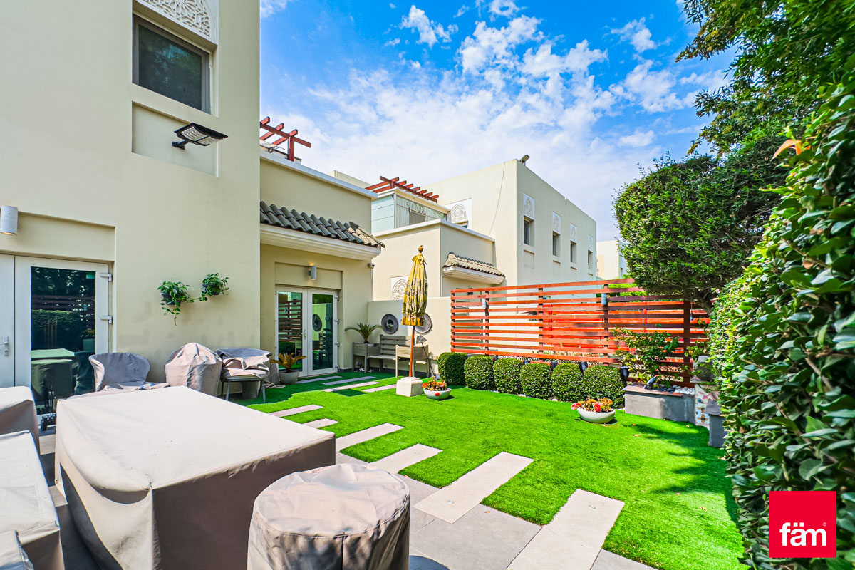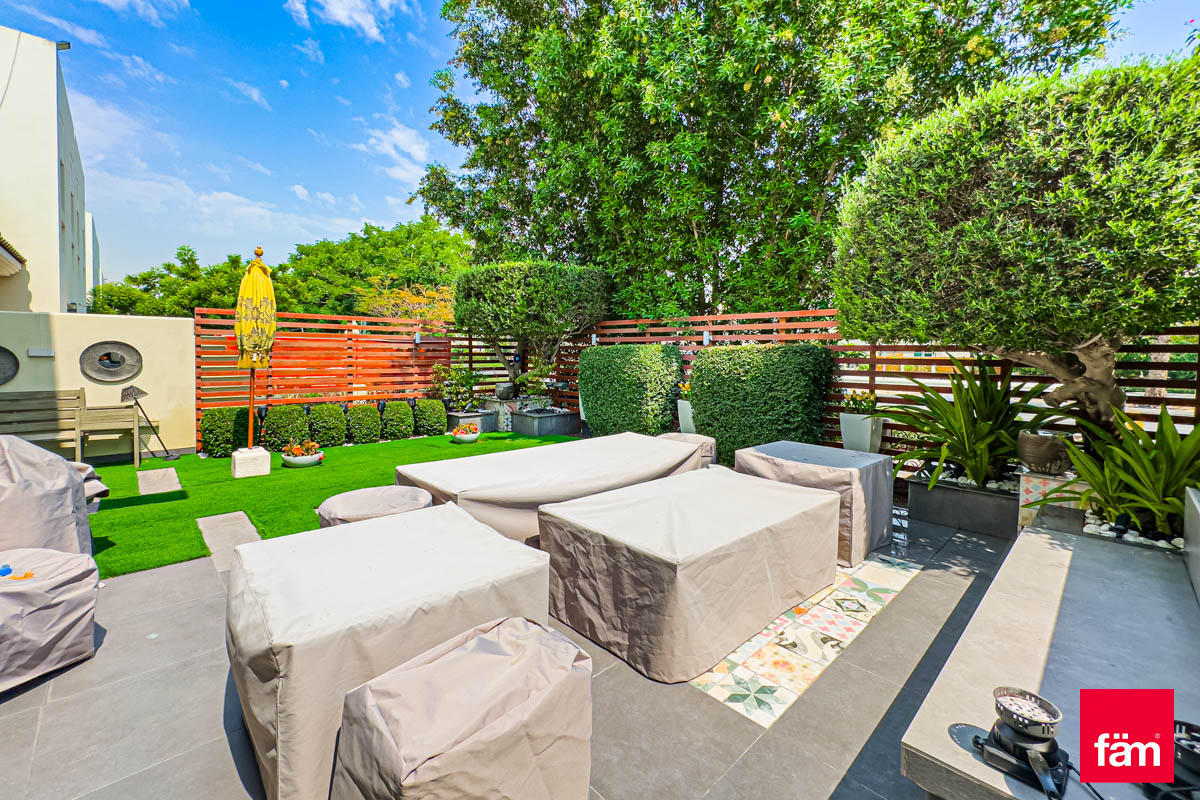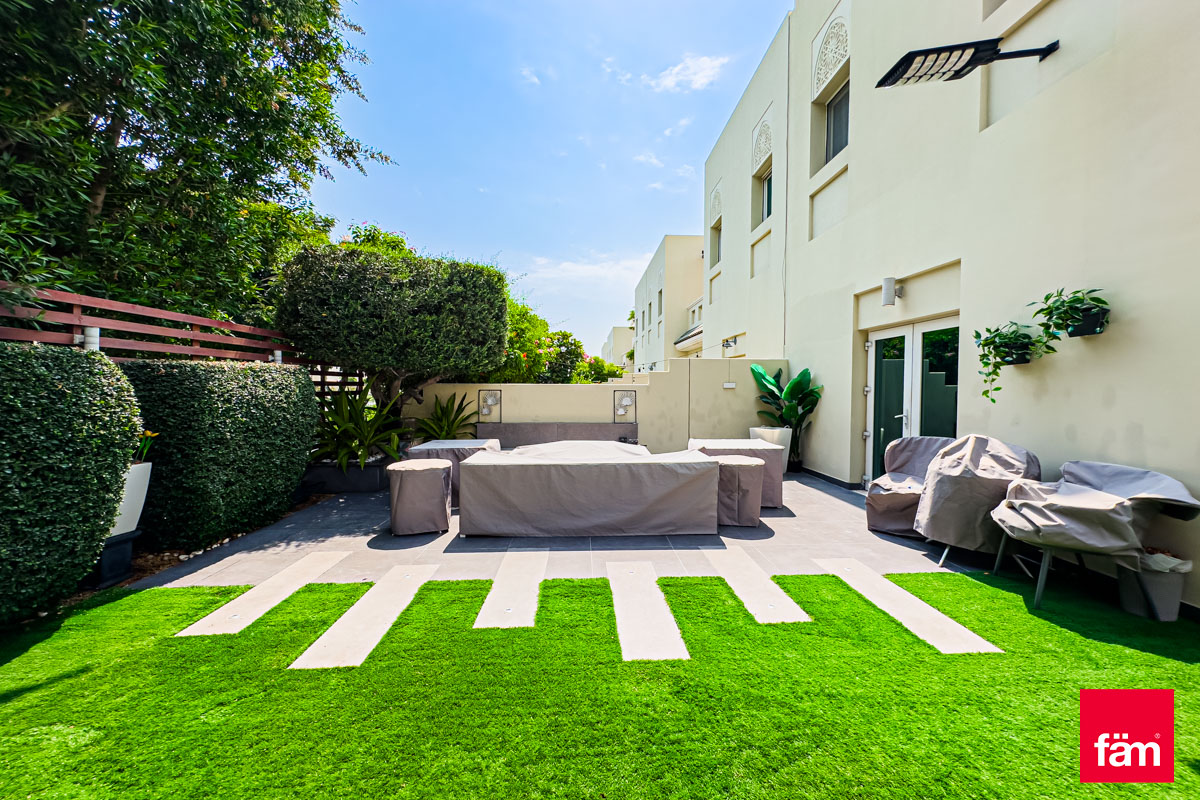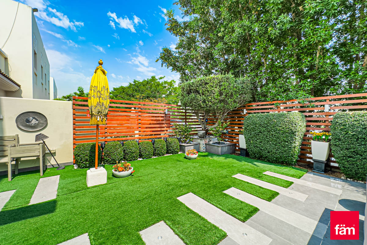 FAM proudly presents this stunning, one of a kind Quortaj townhouse in Al Furjan. The property has been renovated by the current owners which include a stunning fully fitted kitchen, new flooring and a garden perfect for BBQ's. Situated on 2,411 sq. ft corner plot and a generous 2683 sq. ft BUA this property must be viewed. Within walking distance to the Metro & Arcadia school also moments from the Pavilion Clubhouse. Vacant on Transfer, this property is truly one of a kind and sure not to be on the market for long. Please call for more information, to arrange a viewing or to make an offer. • Exclusive Listing • Type A • 3BR + Maid's • BUA: 2683 sq. ft • Plot: 2,411 sq. ft • Impressive upgrades: CCTV Camera, Smart home system AC, upgraded garden. • Spacious semi closed kitchen with Island • Owner Occupied • Single Row • Moments from the Metro & Pavilion