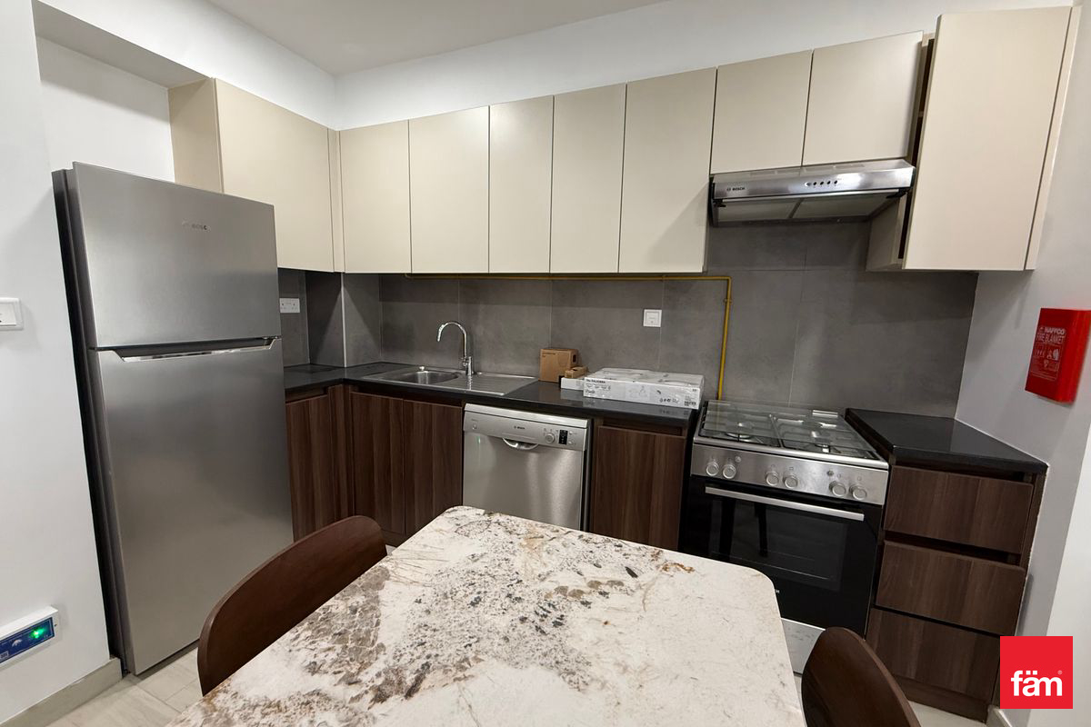 This bright modern home features a sleek kitchen with premium appliances and comes complete with a brand-new set of plates, glasses, cutlery etc. The open-plan living and dining area is tastefully furnished with contemporary pieces, including a stylish marble dining table and elegant crystal chandeliers.