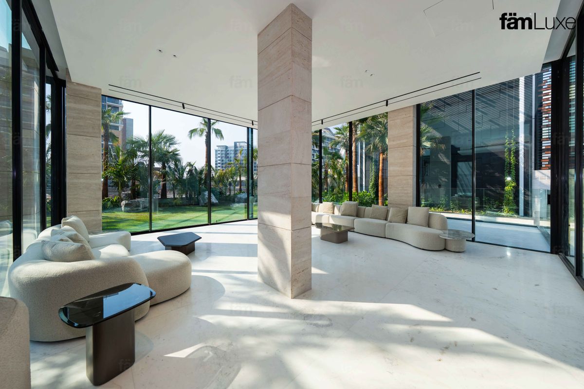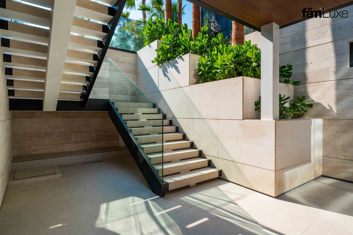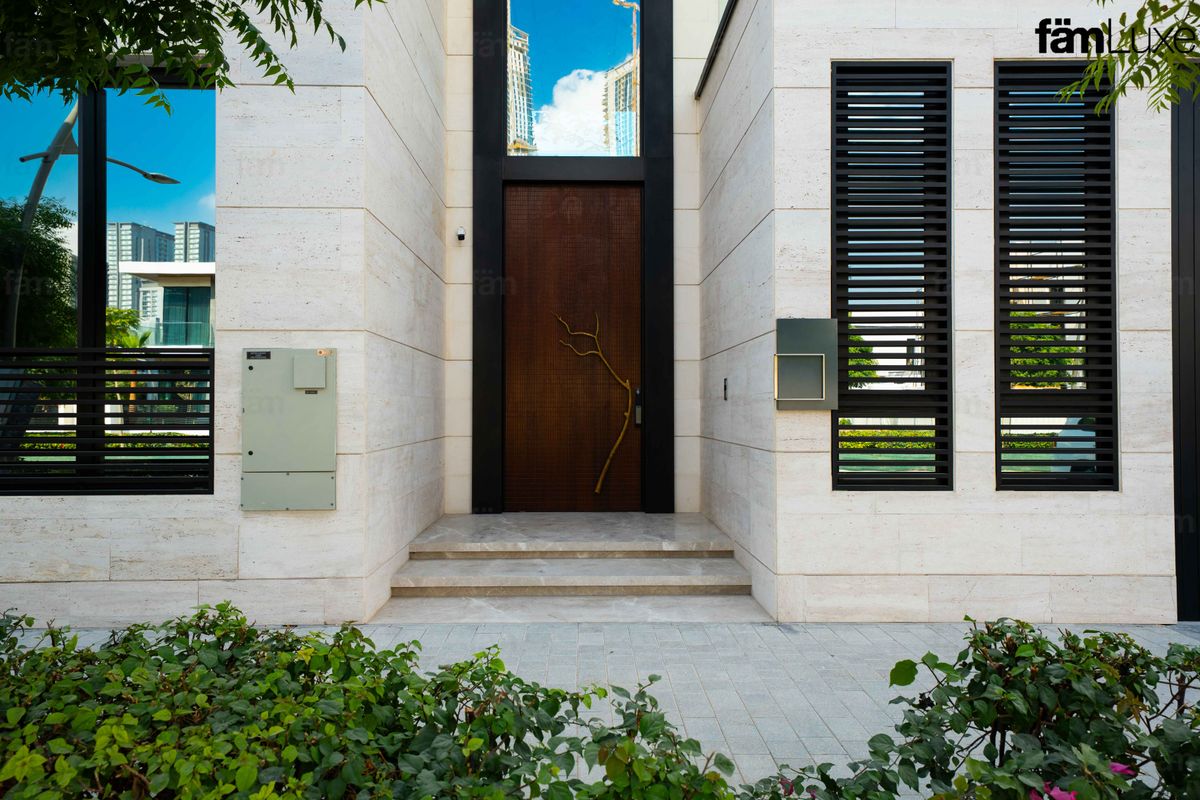 Natural travertine stone façade, offering a timeless and elegant exterior.