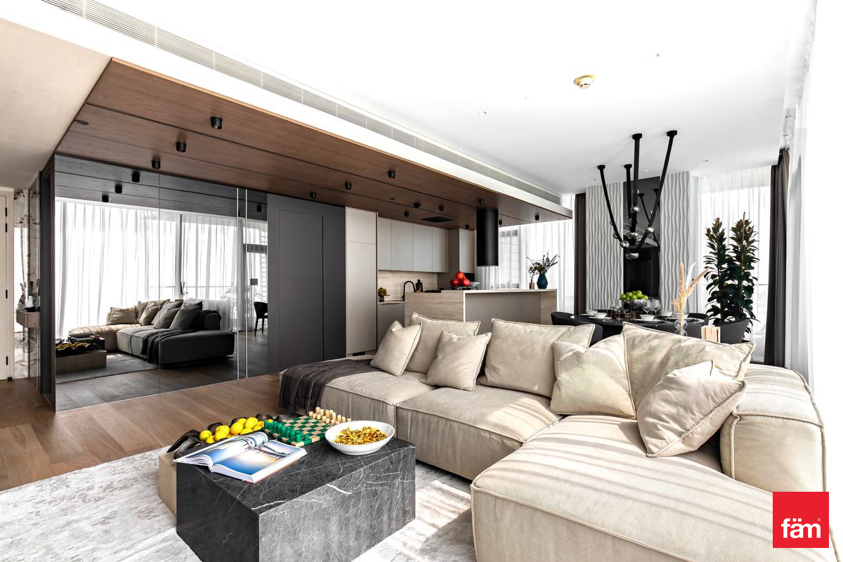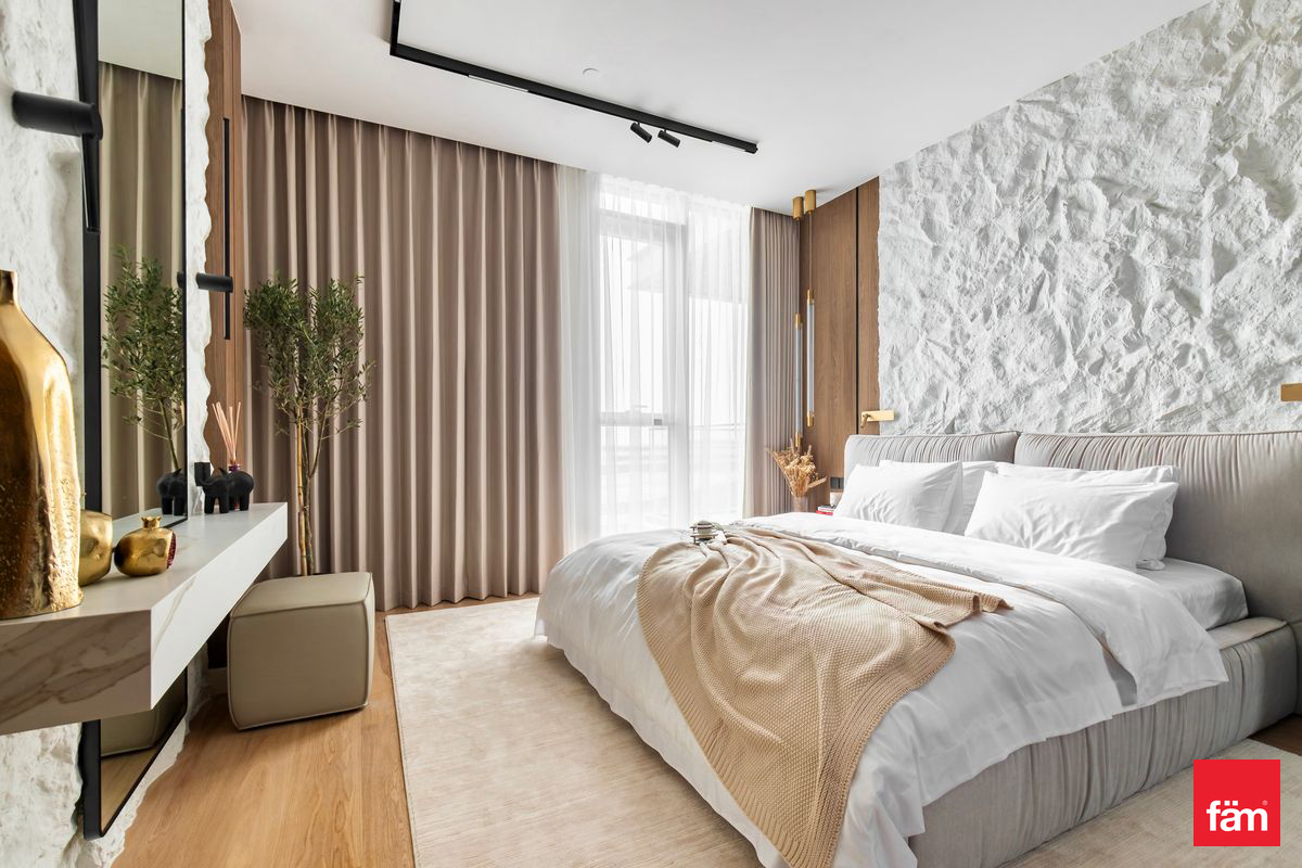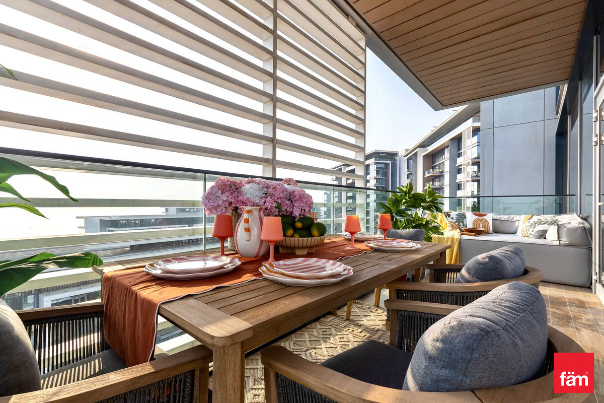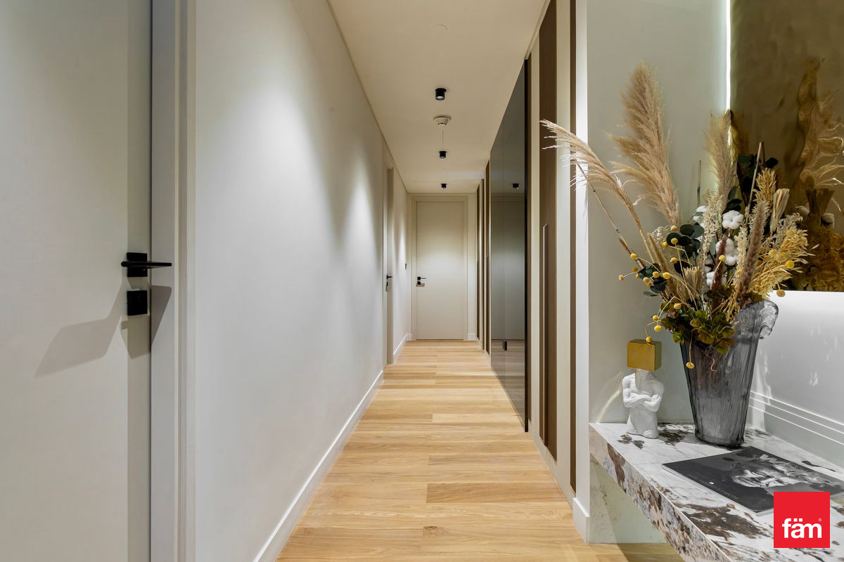 Spanning 2,042 sq. ft., the apartment features elegant interiors, premium finishes, and abundant natural light throughout. The modern kitchen and living areas flow seamlessly, while all bedrooms are generously sized, complemented by 5 luxurious bathrooms and a dedicated maid’s room.