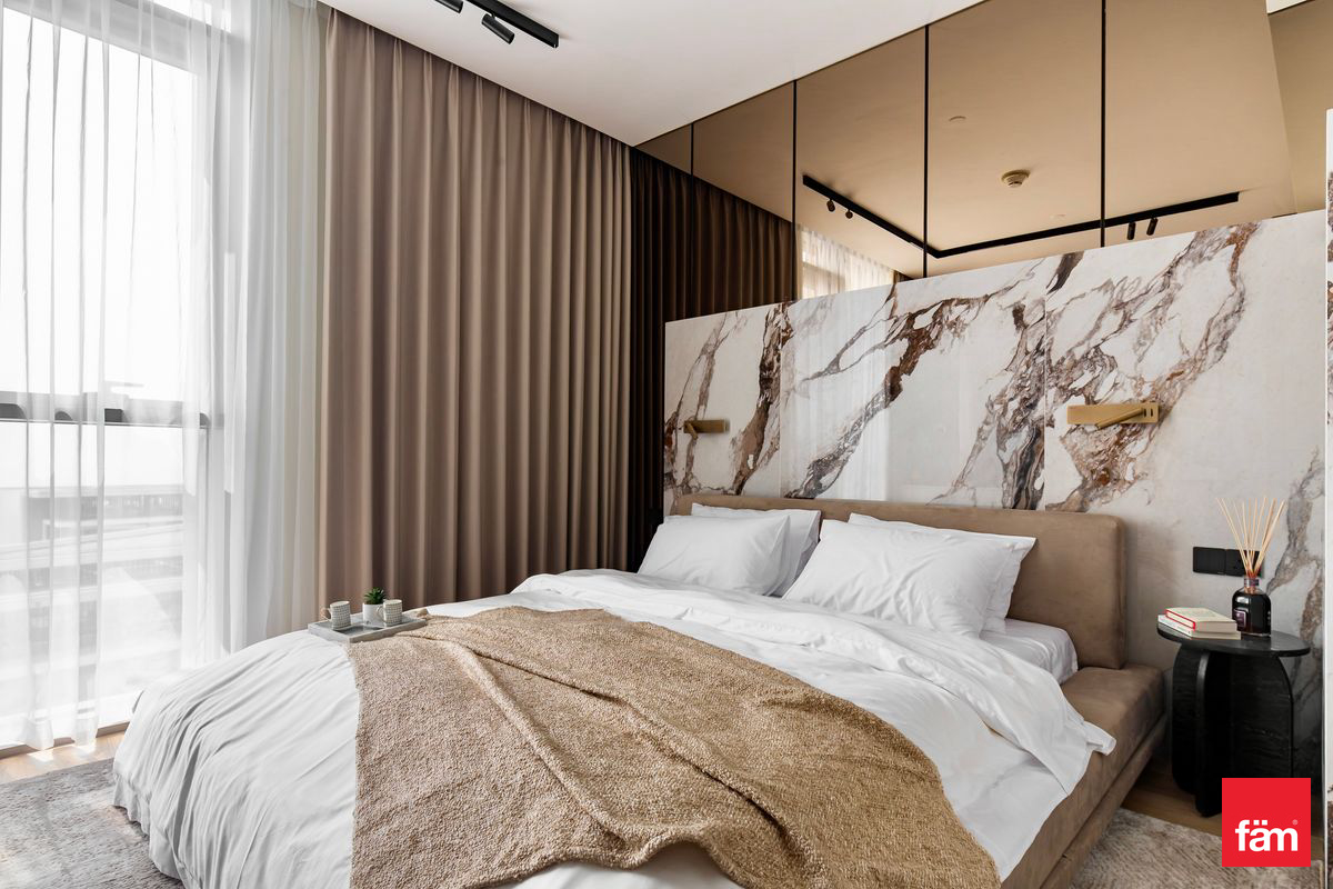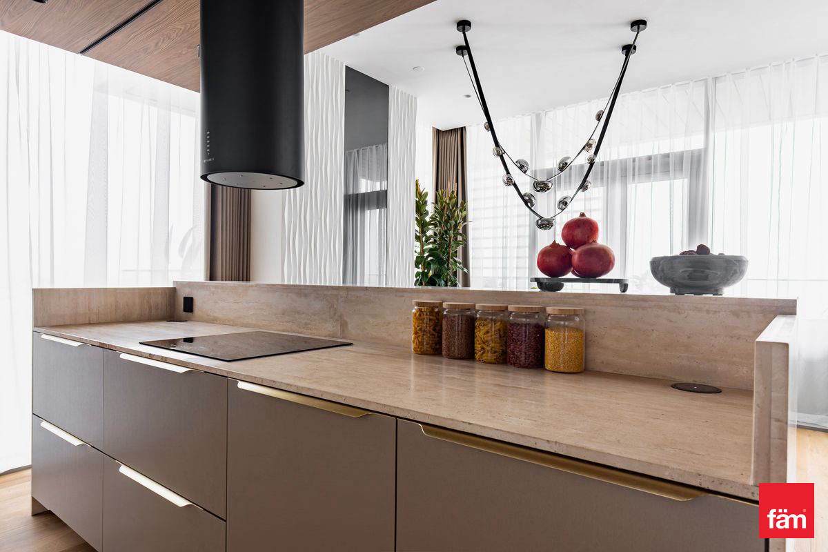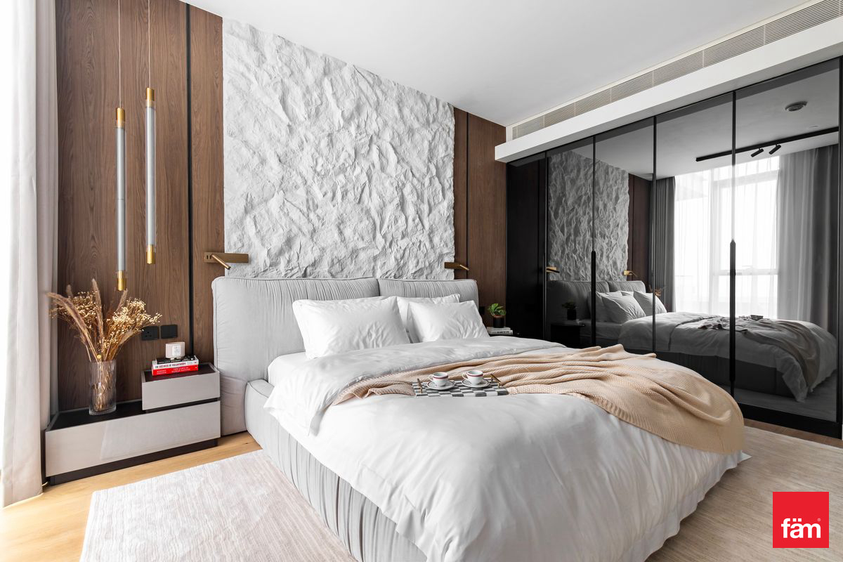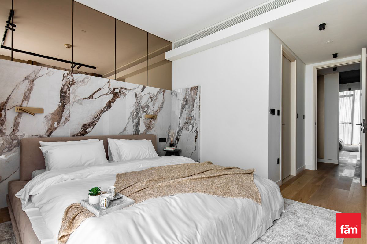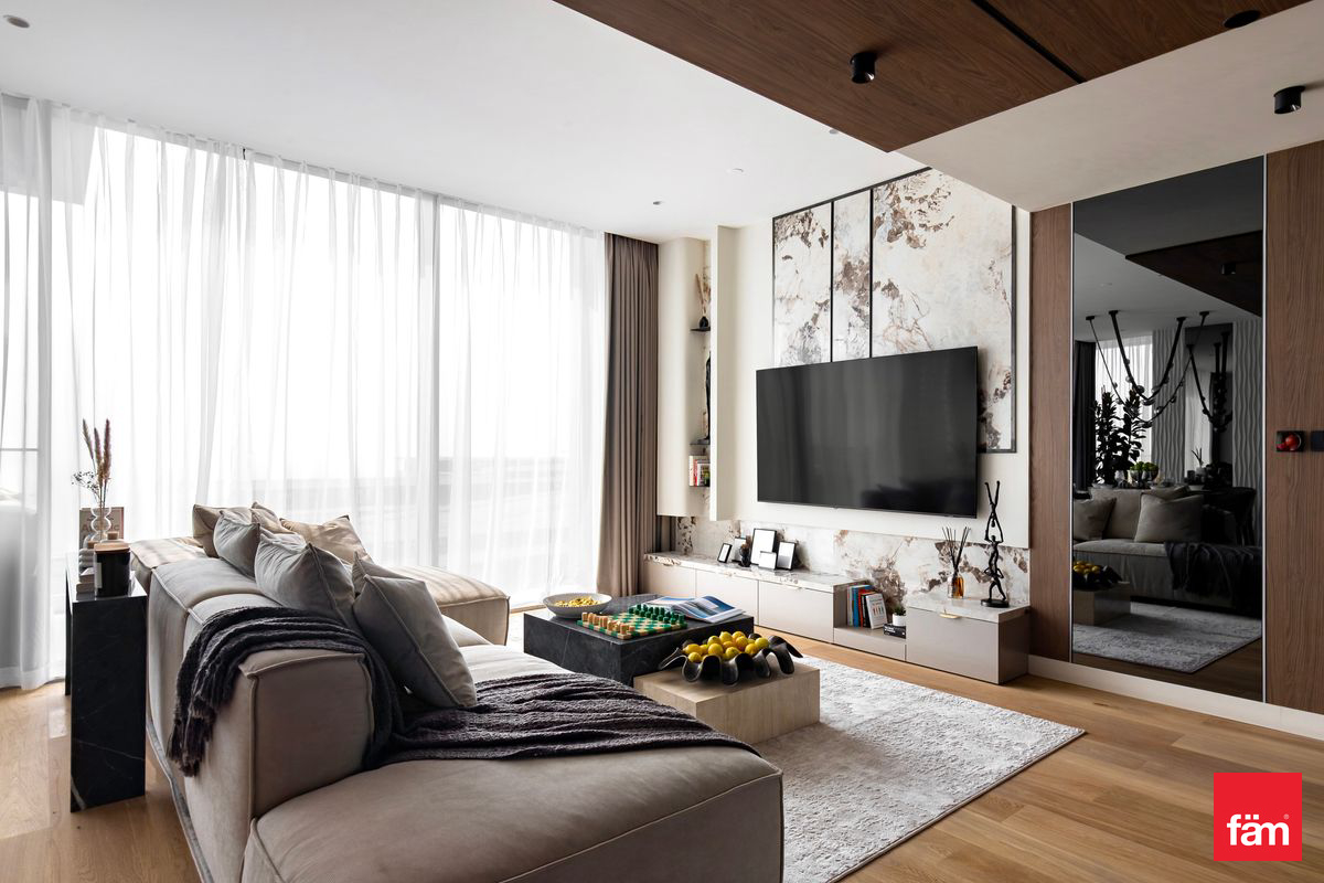 Spanning 2,042 sq. ft., the apartment features elegant interiors, premium finishes, and abundant natural light throughout. The modern kitchen and living areas flow seamlessly, while all bedrooms are generously sized, complemented by 5 luxurious bathrooms and a dedicated maid’s room.