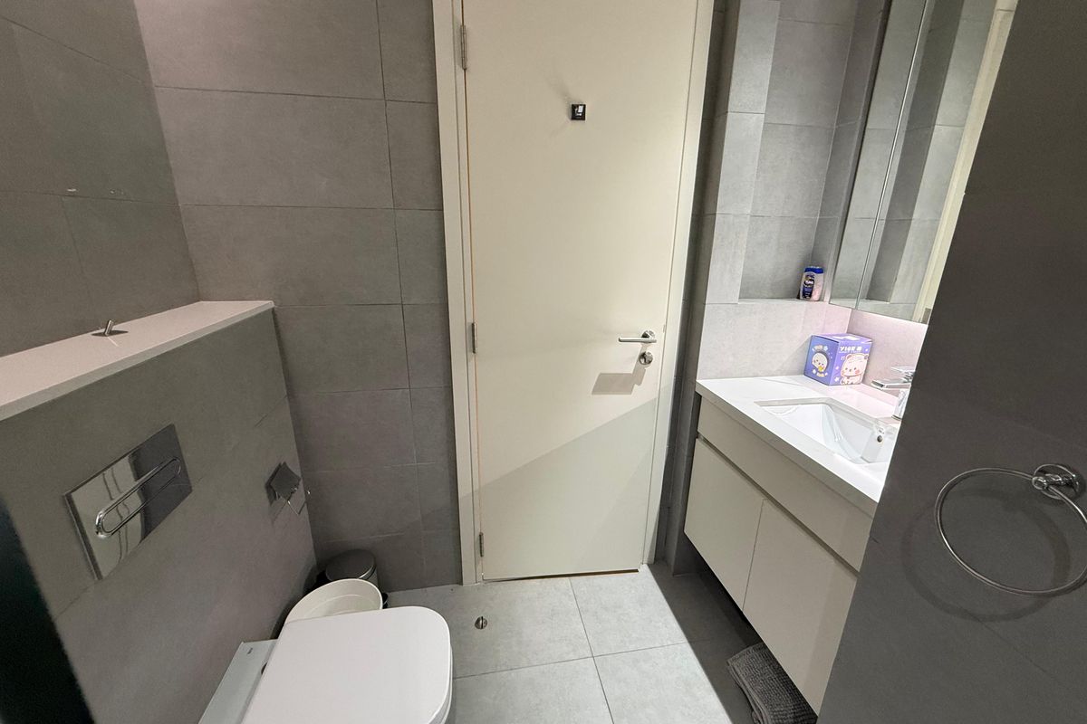 The apartment features two well-appointed bathrooms, a fully equipped kitchen with built-in appliances, and built-in wardrobes, ensuring ample storage space. Residents can enjoy the serene community views from the private balcony, complemented by thoughtfully designed Vastu-compliant interiors promoting harmony and balance.