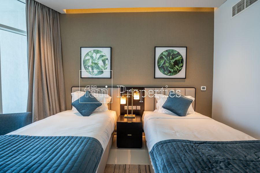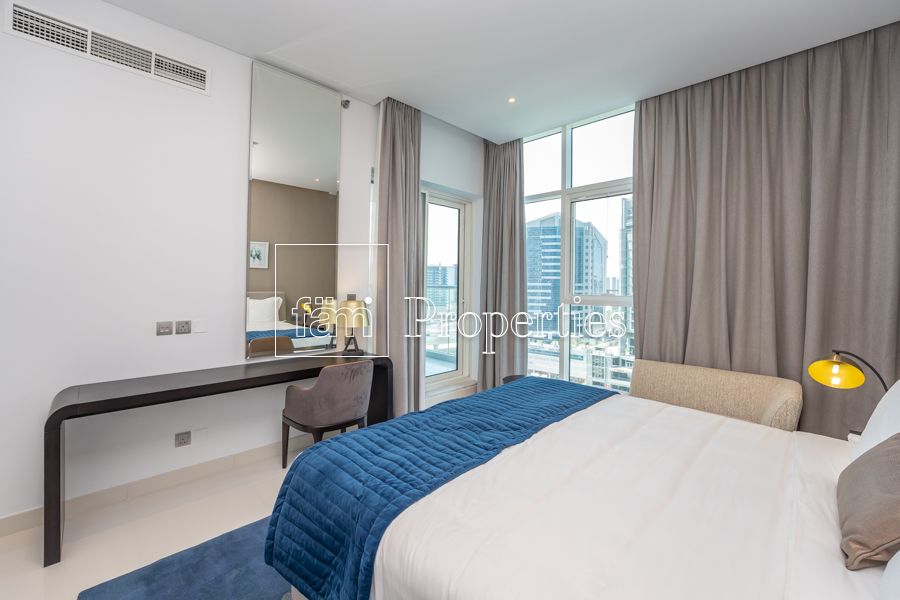 Prive by Damac is one of their best developments yet because it’s a twin-tower project located directly on the Dubai water canal next to the upcoming Marasi Park in business Bay. All units are fully furnished and serviced with a canal/lake view from their floor-to-ceiling windows and balconies. The finishing, furniture, and materials in this project are far more superior when compared to their other developments. The sofas have a pull-out bed, the wardrobes have built-in lights, and the bathroom countertops will have marble. The studios have a built-in carpet under the bed area and will have a partition between the bed and sitting areas.