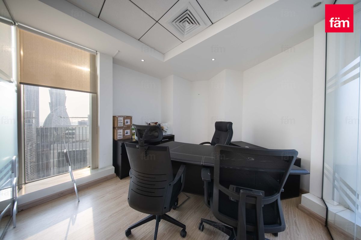 fäm Properties is pleased to present this exceptional office space for rent in the prestigious Burlington Tower, Business Bay, Dubai. This premium office offers a spacious 1,267 sqft layout, thoughtfully furnished to support a professional working environment. Situated on a high floor, the unit boasts breathtaking views of the Burj Khalifa and the serene waterfront, creating an inspiring and prestigious business address.