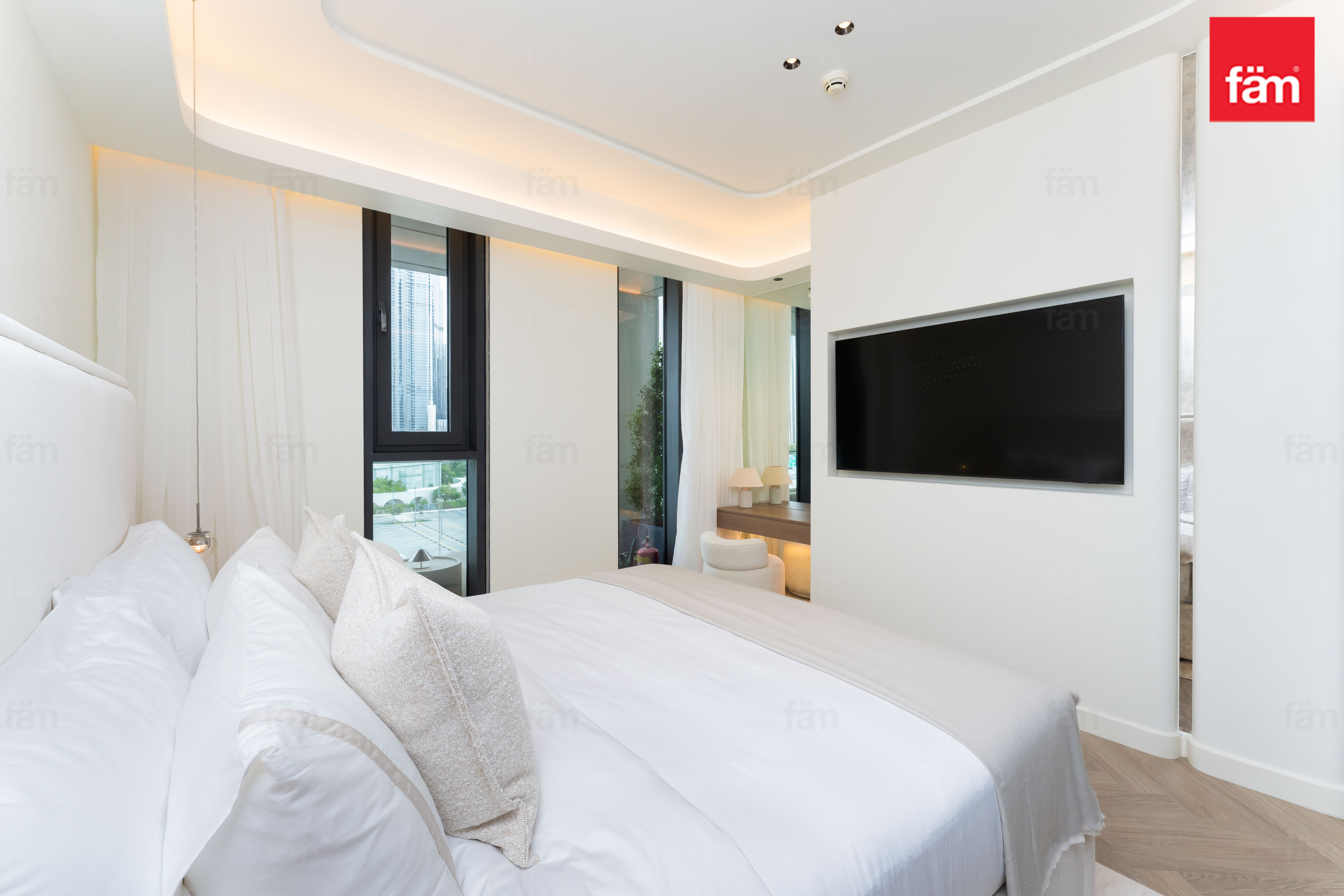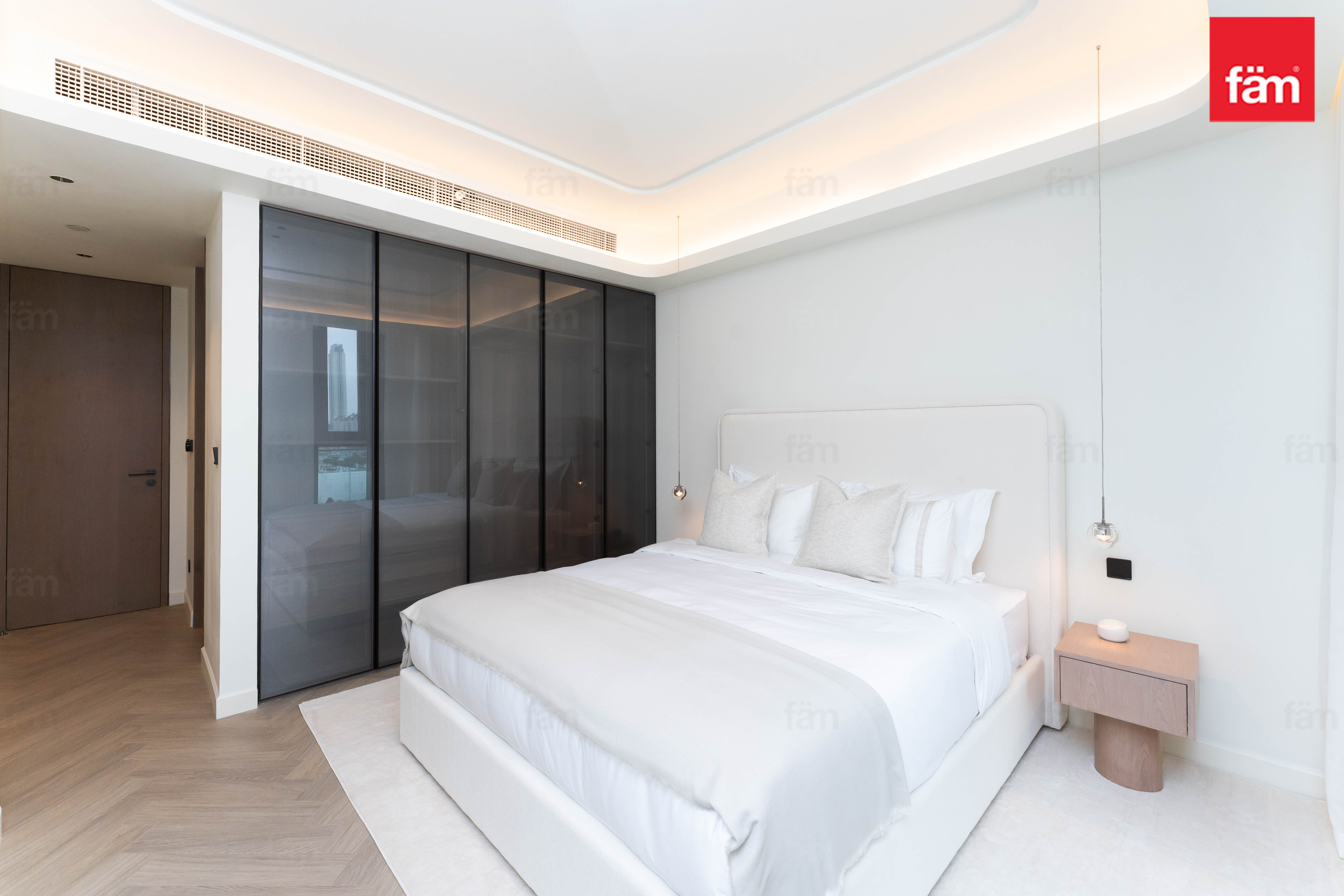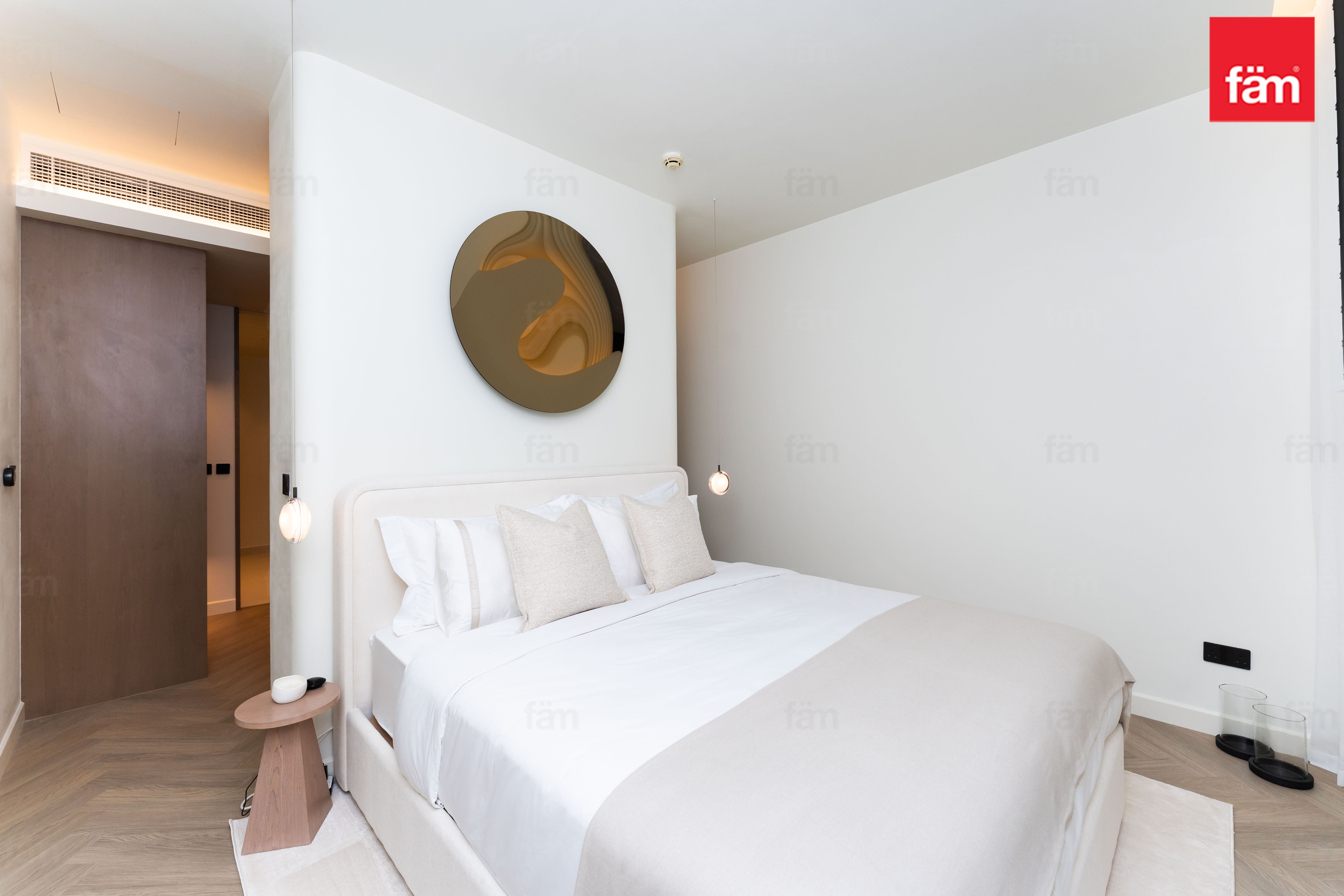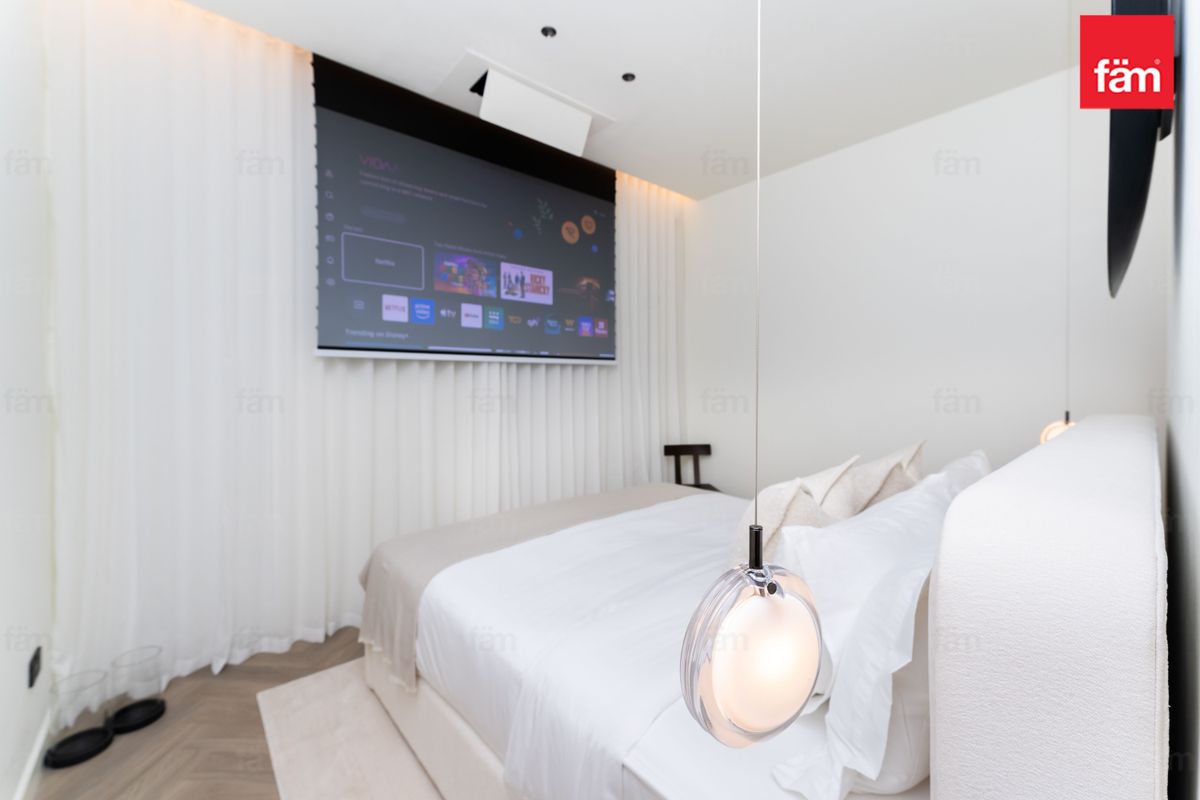 Both bedrooms offer a luxurious and tranquil atmosphere. The master bedroom features a unique ceiling-integrated projector system, transforming the space into a private cinema whenever desired.