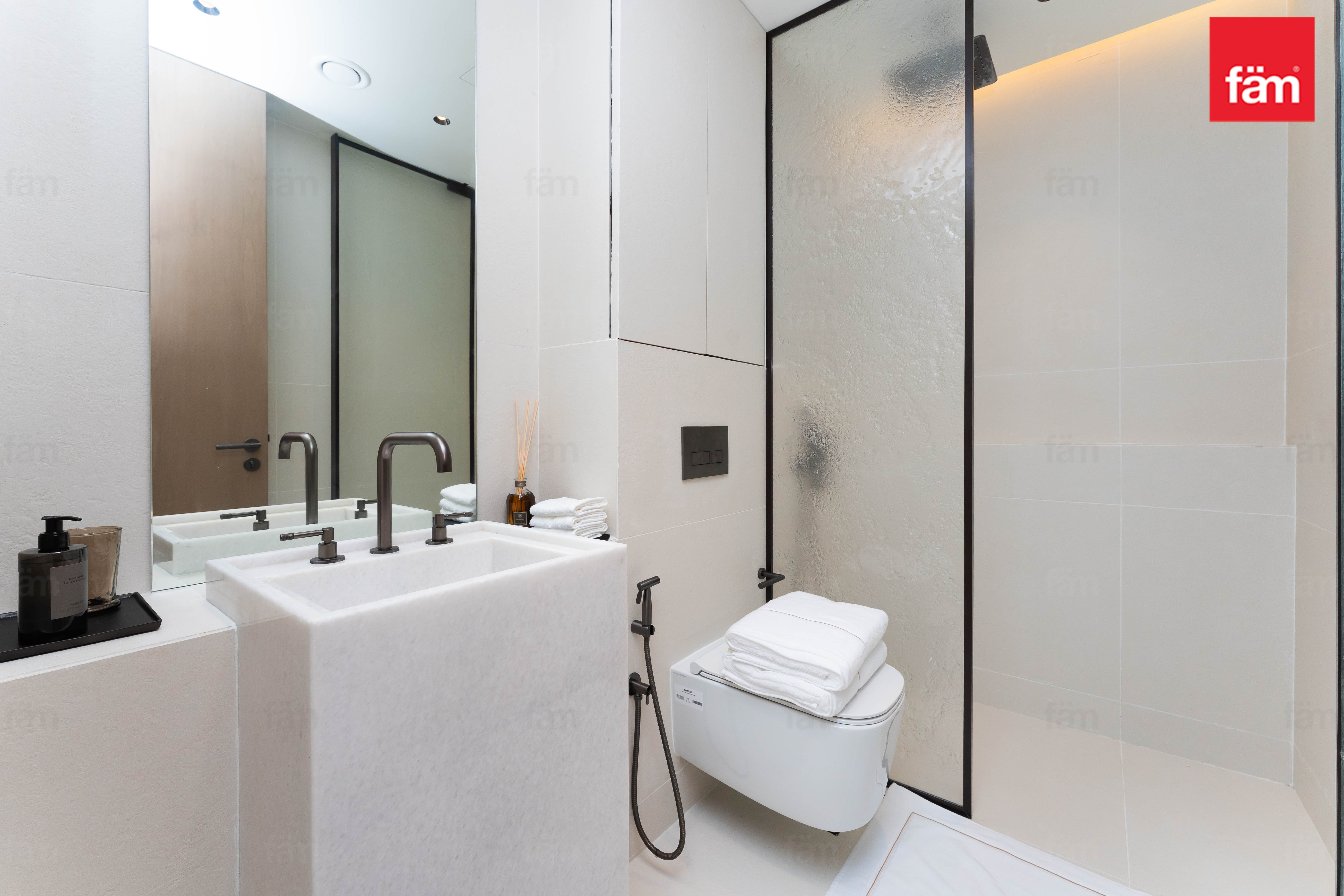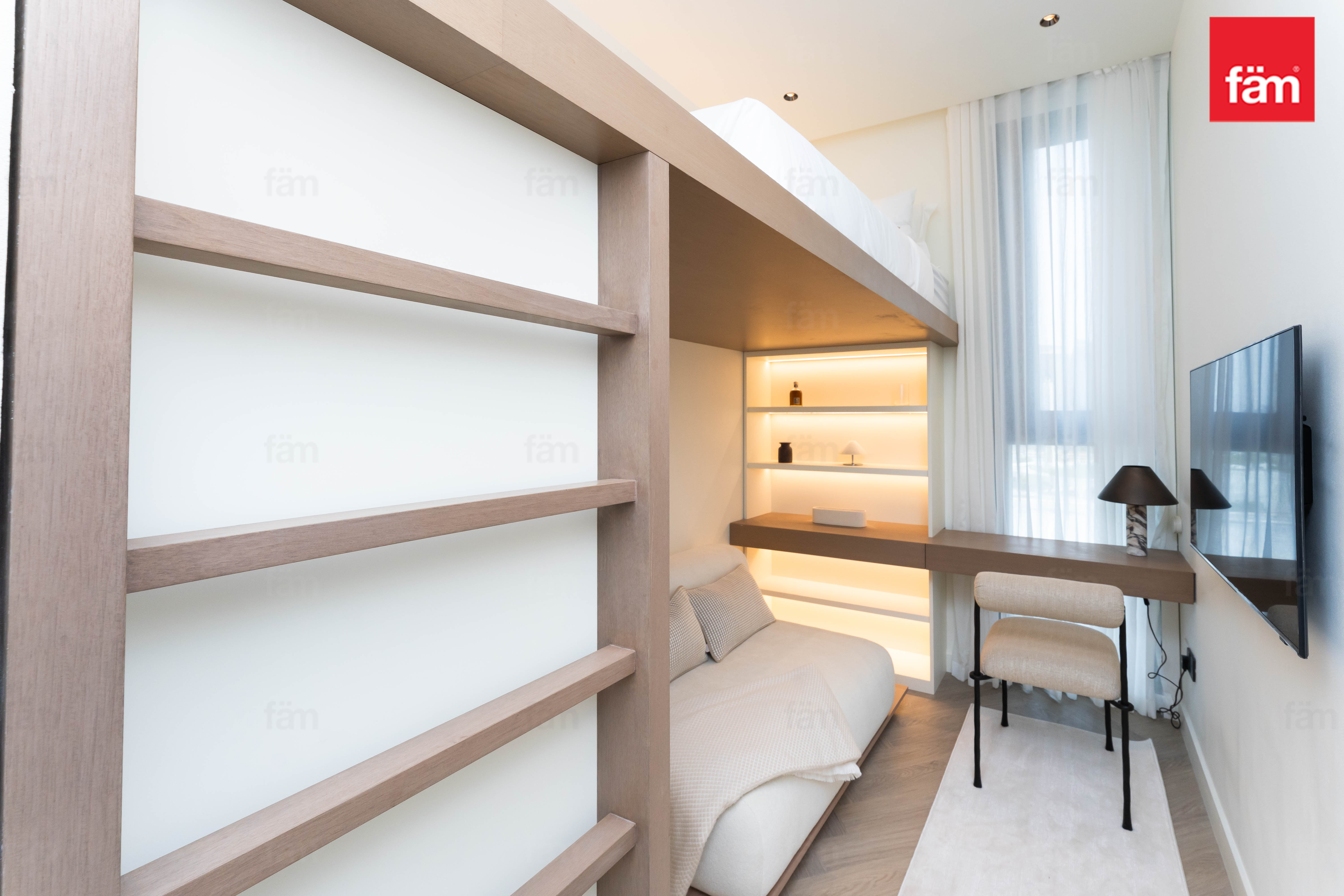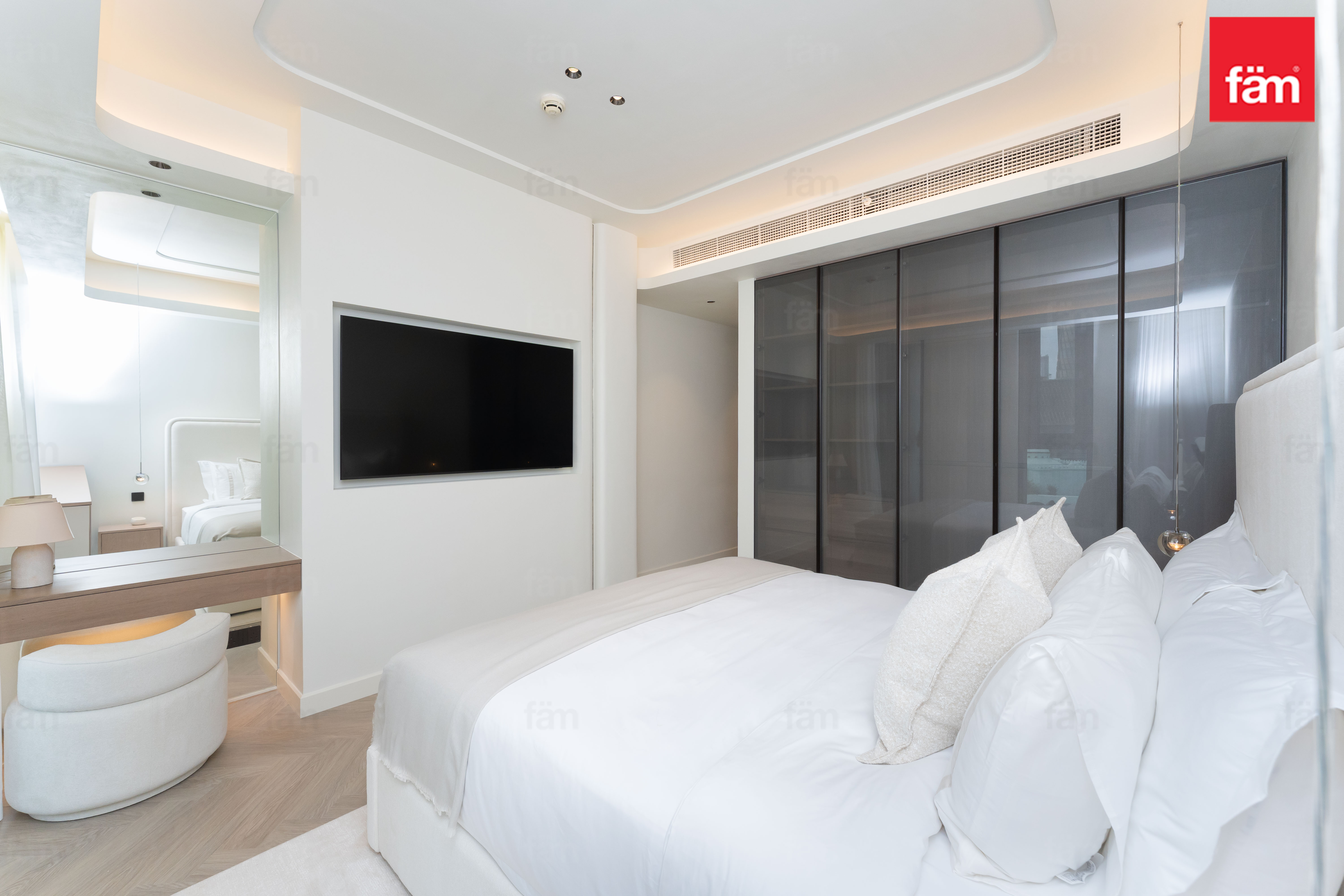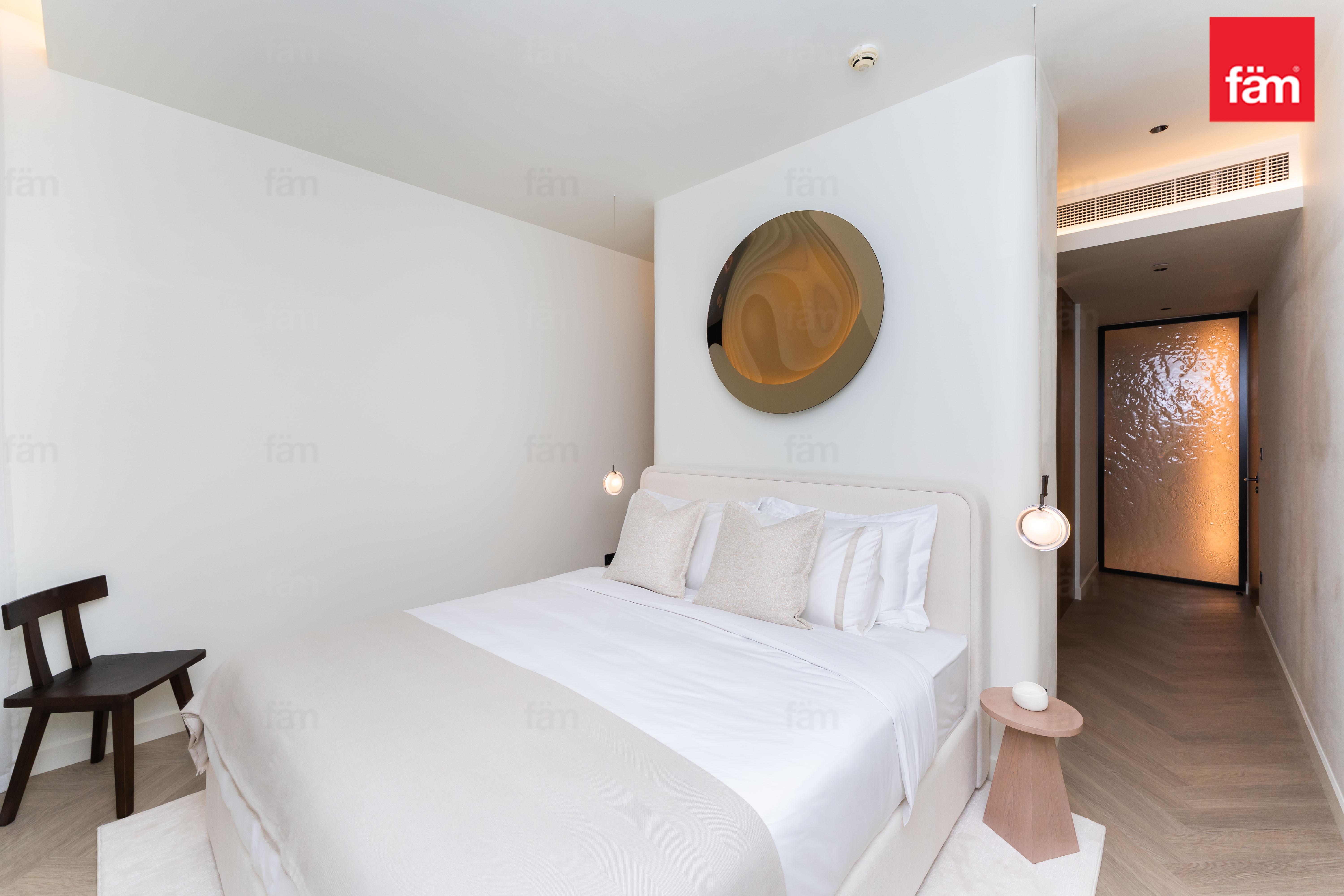 Both bedrooms offer a luxurious and tranquil atmosphere. The master bedroom features a unique ceiling-integrated projector system, transforming the space into a private cinema whenever desired.