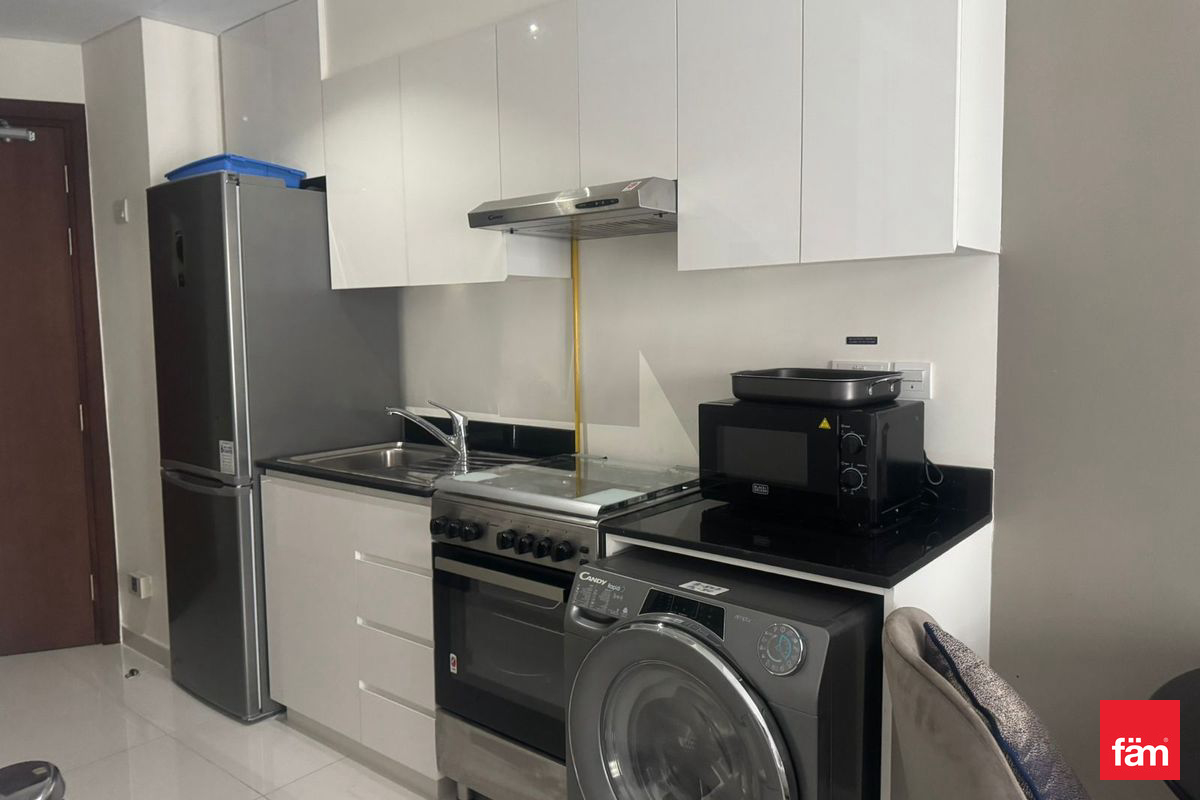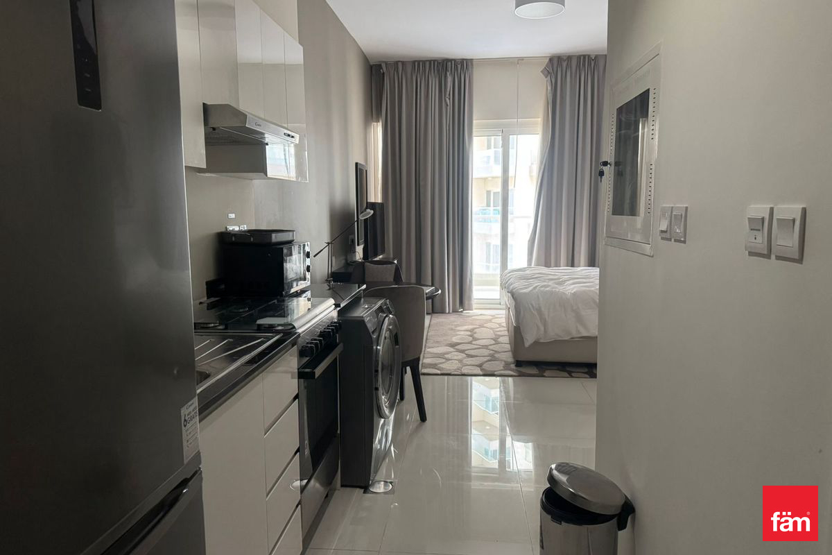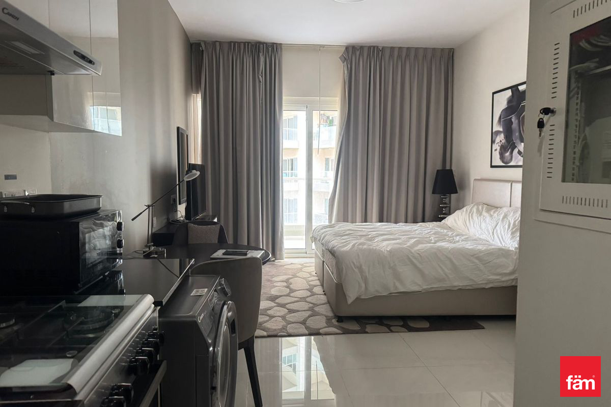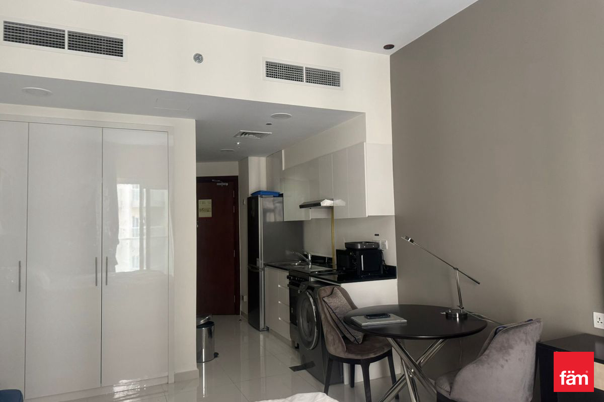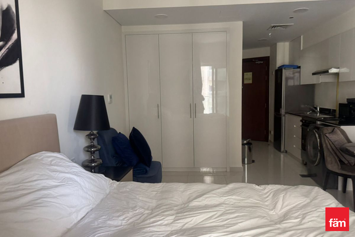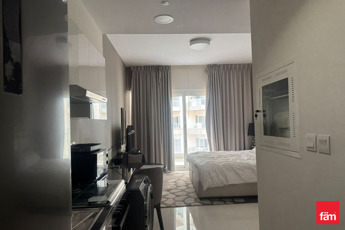 fäm Properties is presents a well-maintained studio apartment available for rent in Virdis B, DAMAC Hills. The unit features a spacious open-plan layout, fitted kitchen with modern finishes, and a sleek bathroom. Large windows allow for plenty of natural light and offer peaceful community views.