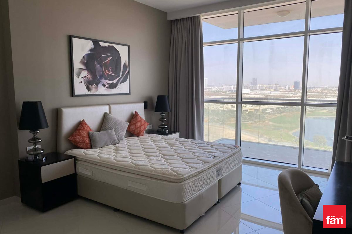 Experience upscale living in this beautifully furnished 2 bedroom apartment located on a high floor of the prestigious Artesia Tower B in Damac Hills 1 full Golf View Vacant . This modern home offers a panoramic full golf course view, allowing you to enjoy stunning greenery and peaceful sunsets every day from your private balcony. The apartment features a spacious open plan living and dining area, elegantly furnished with stylish, high quality pieces. The fully equipped kitchen comes with modern appliances and ample storage, perfect for convenient everyday living. Residents of Artesia enjoy exclusive access to world class amenities, Access to the Trump International Golf Club, lush parks, walking trails, and Damac Hills community center , restaurants, and supermarkets nearby. Artesia Tower is a premium residential development located within the prestigious Damac Hills 1 community, developed by Damac Properties.