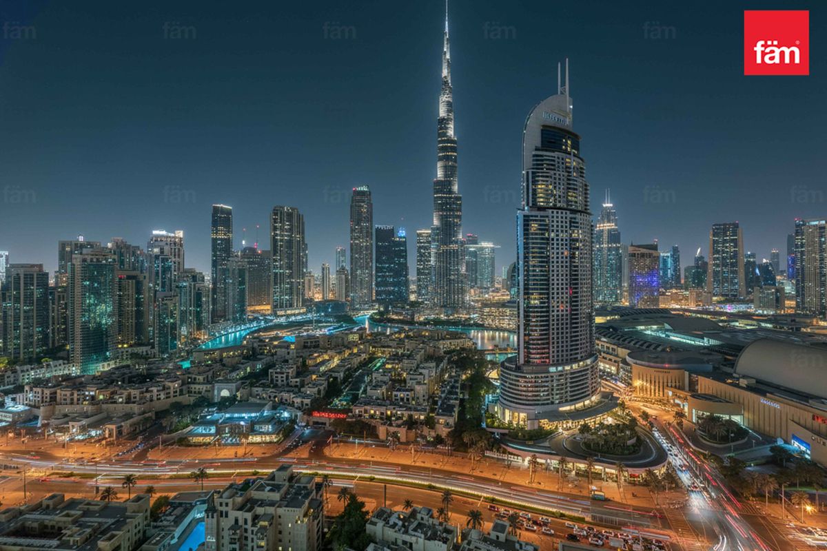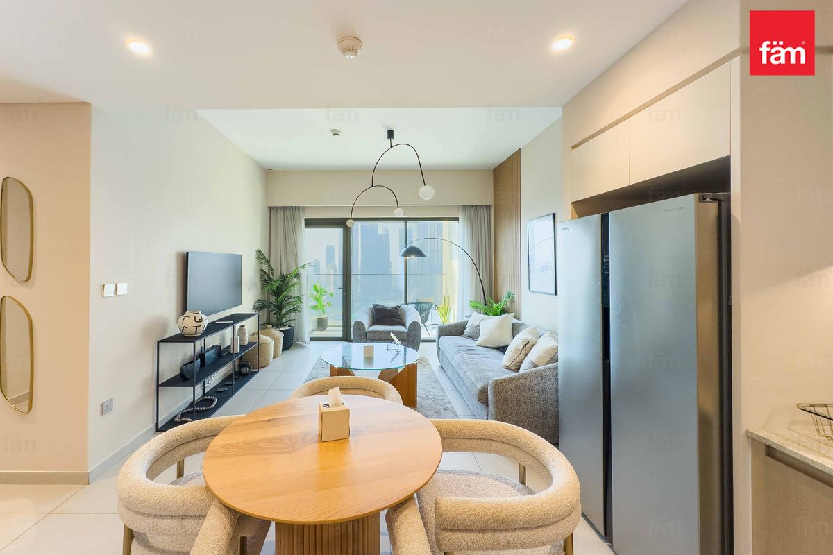 • Full Burj Khalifa + Dubai Fountain views from living area and balcony.