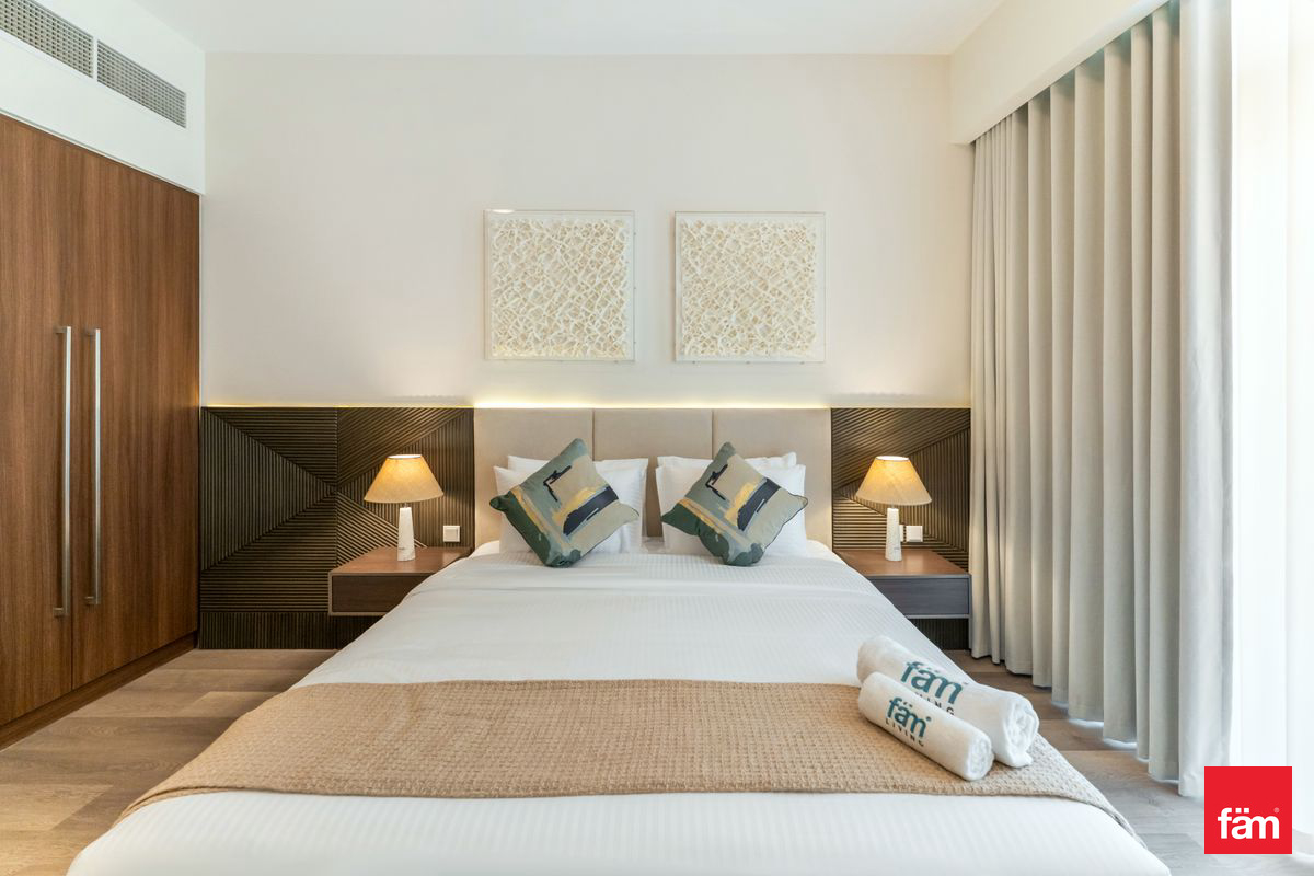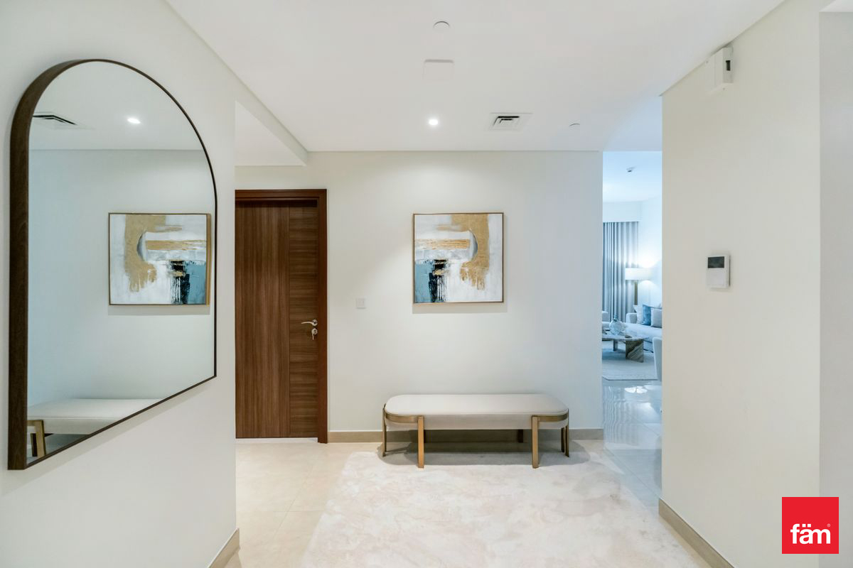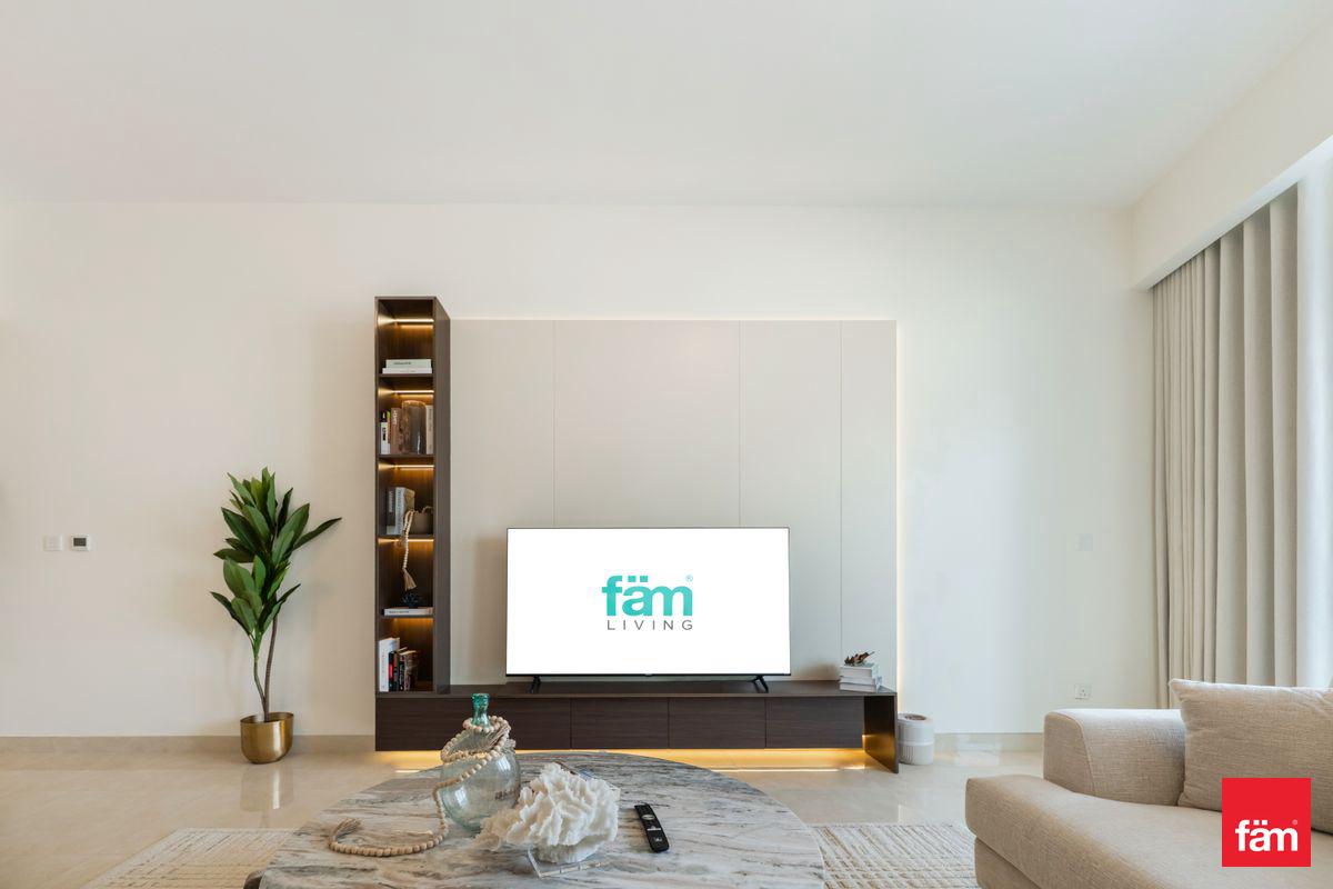 The interiors are not merely furnished—they’re curated. Every piece, from the sculptural lighting to the custom cabinetry, reflects a deliberate design language: warm woods, brushed brass, and soft neutral textiles that evoke calm and permanence. The open-plan living and dining area flows seamlessly into a private balcony, while the three en-suite bedrooms offer hotel-grade comfort with residential intimacy. The maid’s room is discreetly tucked away, ideal for staff or storage.