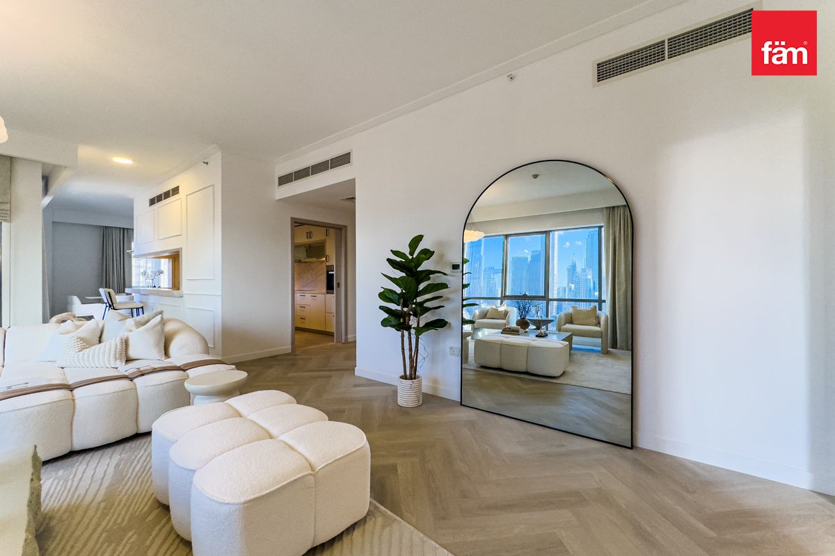 Presented by fäm Properties, a meticulously designed and fully upgraded 3-bedroom plus Maid apartment in the heart of Downtown Dubai.