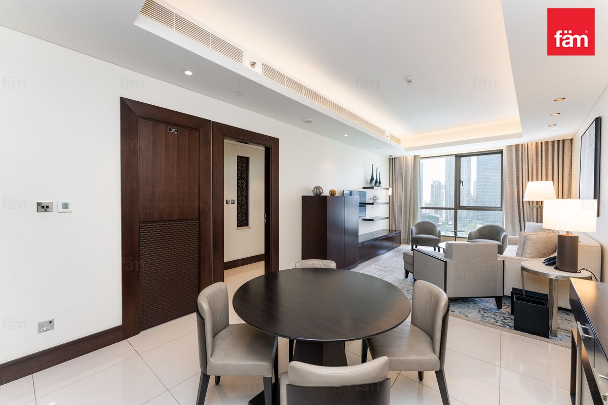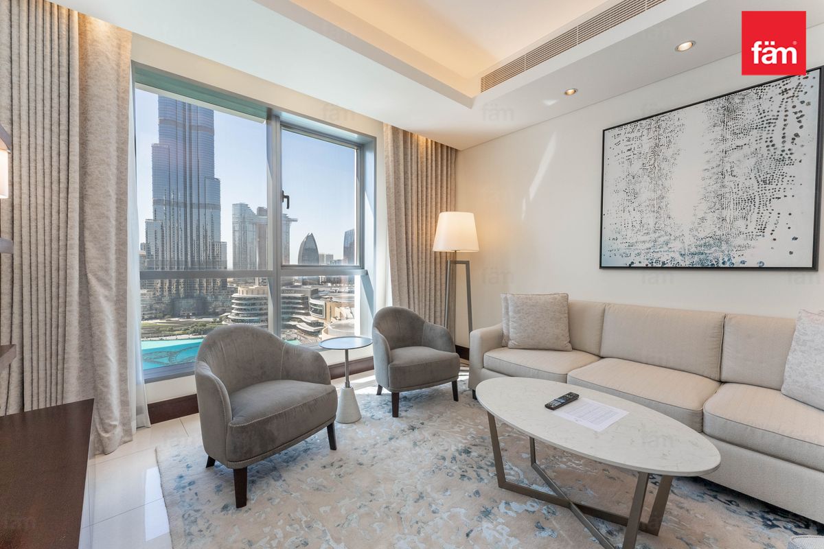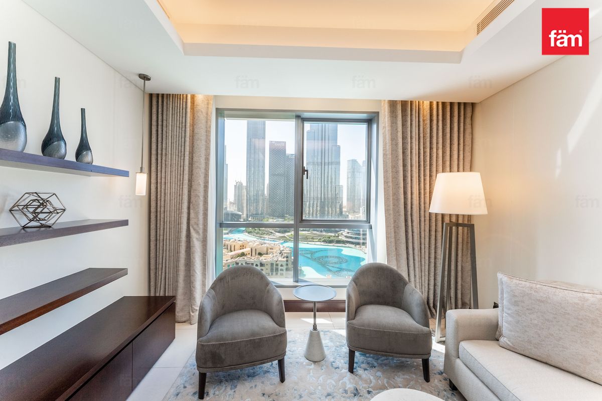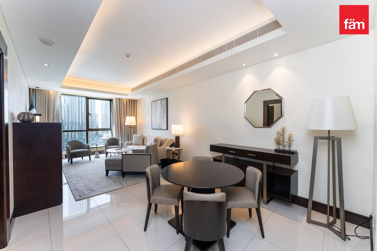 fäm Properties is proud to present this stunning 1-bedroom apartment in The Address Downtown Hotel, offering an exceptional blend of luxury, comfort, and iconic views in the heart of Downtown Dubai.