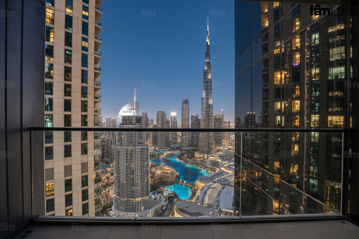 - Iconic Burj Khalifa view from a high floor balcony