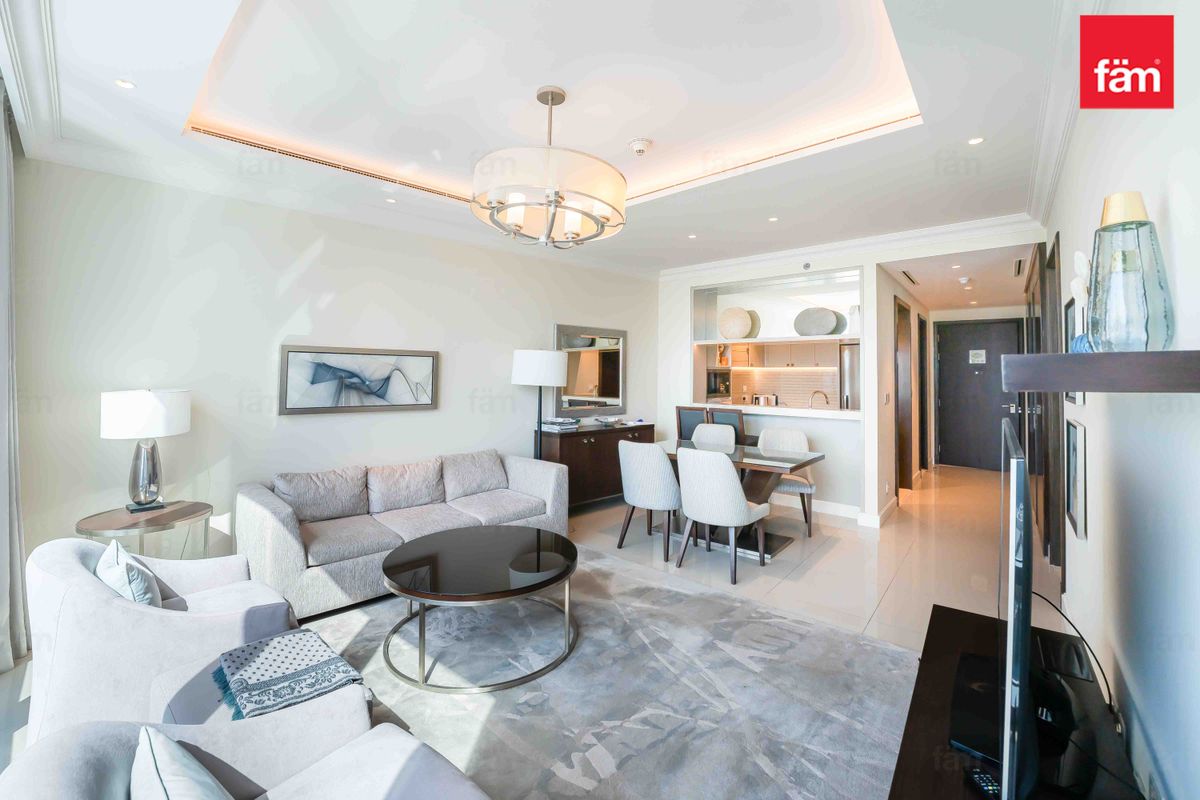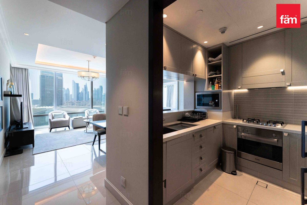 Discover unparalleled luxury in the heart of Dubai's iconic skyline with this stunning 1-bedroom apartment for sale in The Address Residence Fountain Views 2, a masterpiece developed by Emaar. Priced at AED 3,599,888 and spanning 853 sqft, this fully furnished residence offers a seamless blend of sophistication and comfort, ready for immediate occupancy.