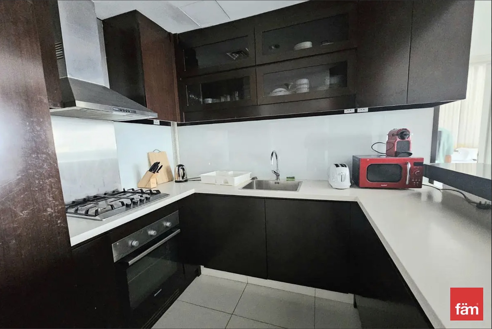 - Fully equipped open kitchen with built-in appliances and pantry