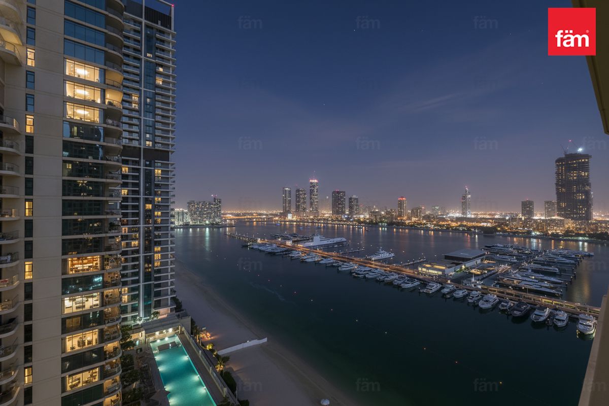 Strategically situated within the prestigious Dubai Harbour development by Emaar, this property offers unrivalled access to key landmarks including Dubai Marina, The Palm Jumeirah, Burj Al Arab, and Jumeirah Beach. Residents benefit from a vibrant community lifestyle with waterfront promenades, retail outlets, dining options, and leisure facilities just moments away.
