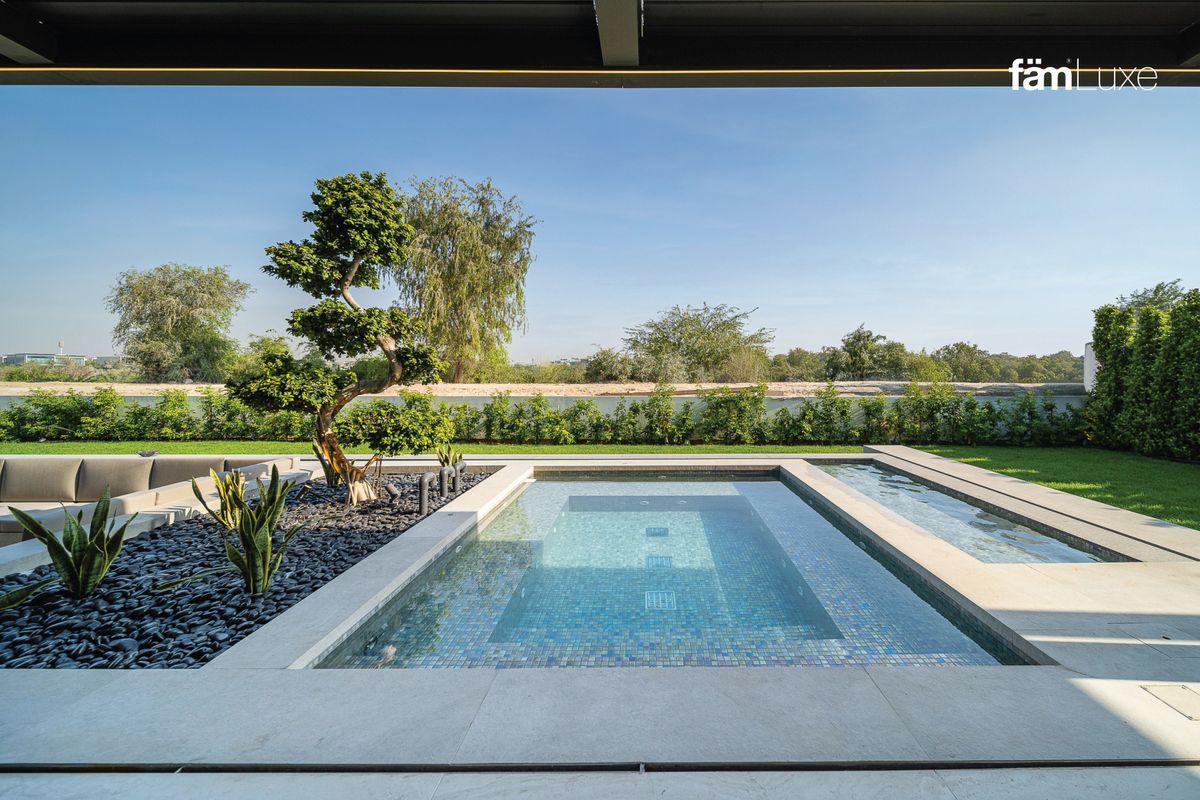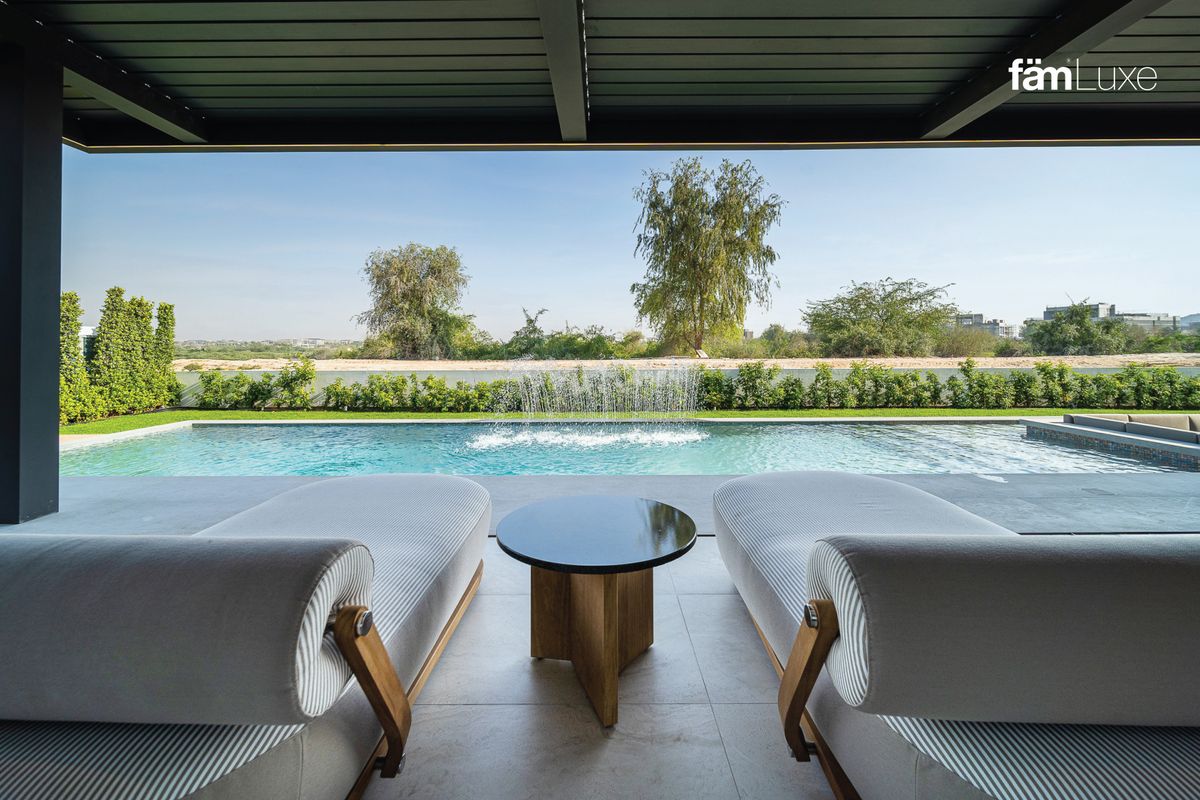 Designed to embrace the serene golf course and lush community views, the villa is Vastu-compliant and offers extensive outdoor living spaces including a private garden, a sparkling private pool, a children’s pool, and a barbeque area perfect for entertaining guests.