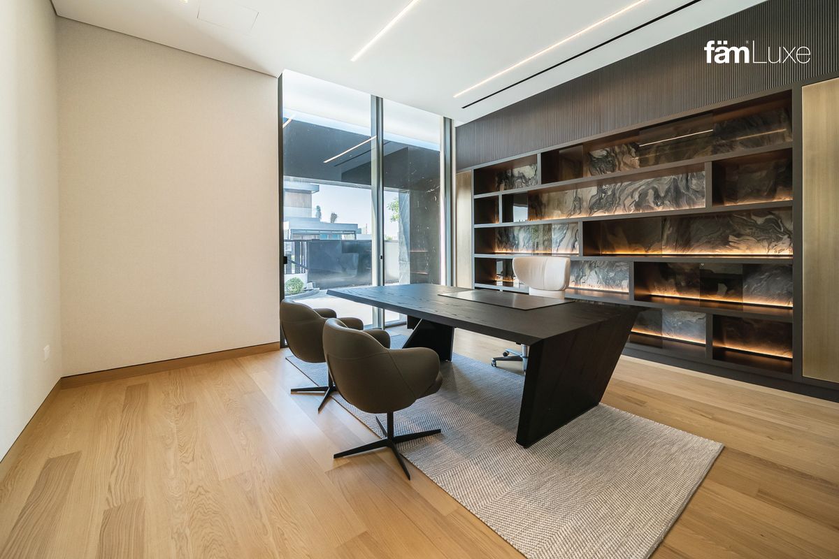Crafted by the renowned developer Emaar, this smart home seamlessly integrates cutting-edge technology with elegant interiors. Fully furnished to the highest standards, the villa features an open-plan kitchen equipped with premium kitchen appliances, a private wine cellar, and multiple living areas including a dedicated study room and a luxurious basement.