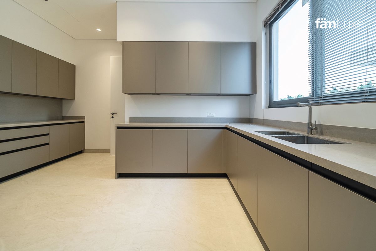 Retreat into your private sanctuary with spacious bedrooms boasting walk-in closets and built-in wardrobes, accompanied by seven lavish bathrooms. The master suite offers a private balcony, a state-of-the-art gym, and a Jacuzzi that promises ultimate relaxation. Additional highlights include a maid’s room, a driver’s room, and ample covered parking with a garage.