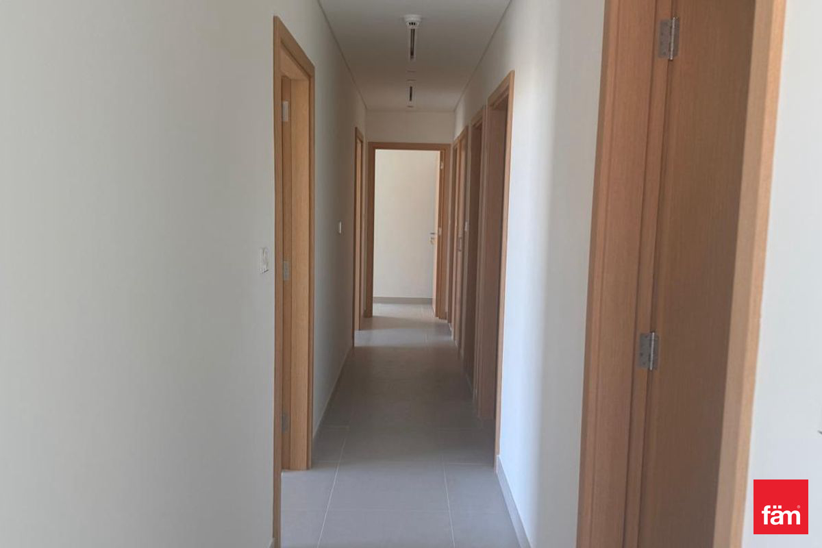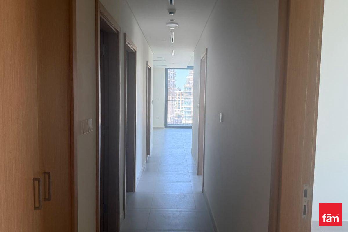 This unfurnished apartment features a generous living and dining area, large windows providing abundant natural light, a well-planned kitchen, built-in wardrobes, and multiple modern bathrooms with quality finishes.