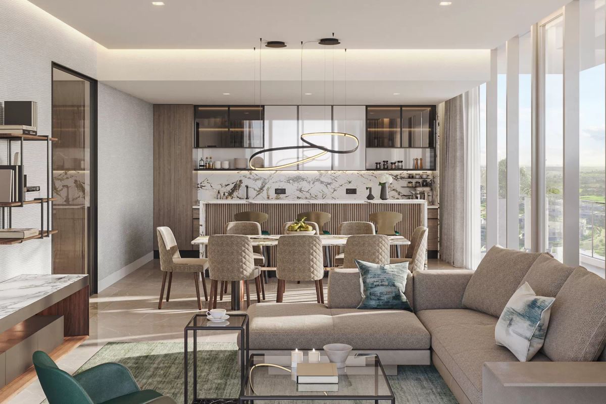 This thoughtfully designed home combines Swiss grade craftsmanship with a spacious and elegant interior layout. It features open plan living, en suite bedrooms, a dedicated maid s room, and calming views of the surrounding greenery and golf course. A perfect fit for both families and investors seeking rare, large format units in a premium, low rise development.
