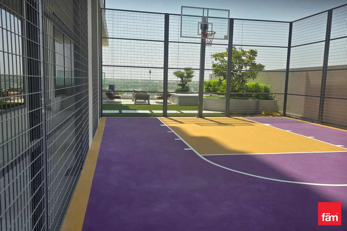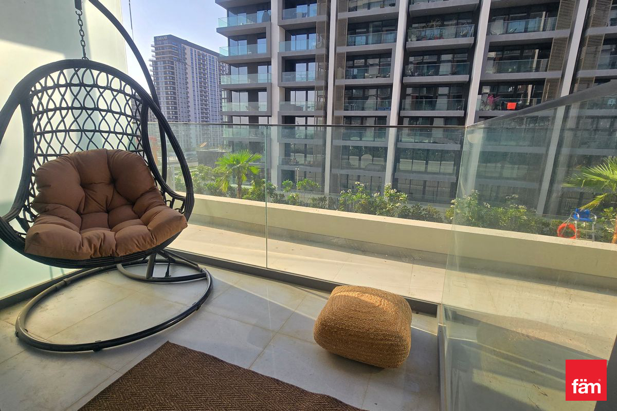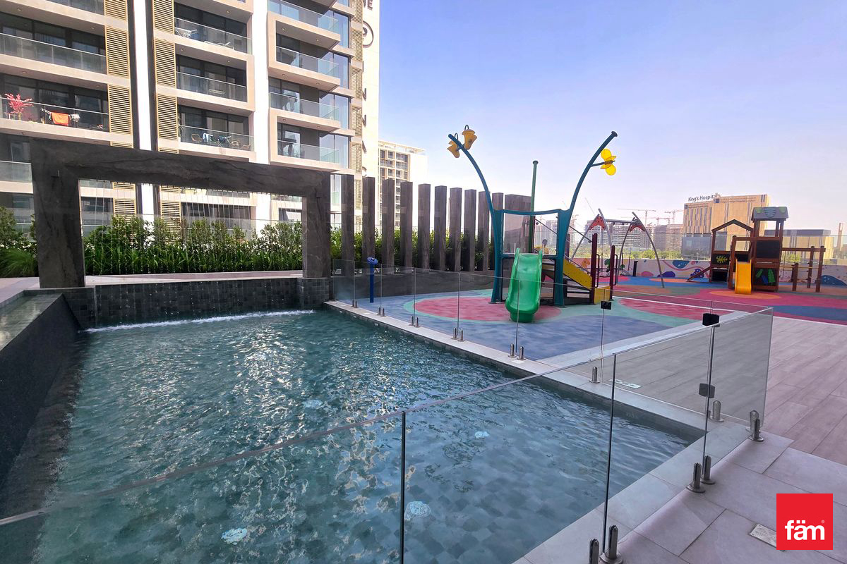 The apartment features built-in wardrobes, central AC, and kitchen appliances. Located in a family-friendly community, residents benefit from proximity to top schools like GEMS International School and Kings School, and convenient access to Dubai Hills Mall.