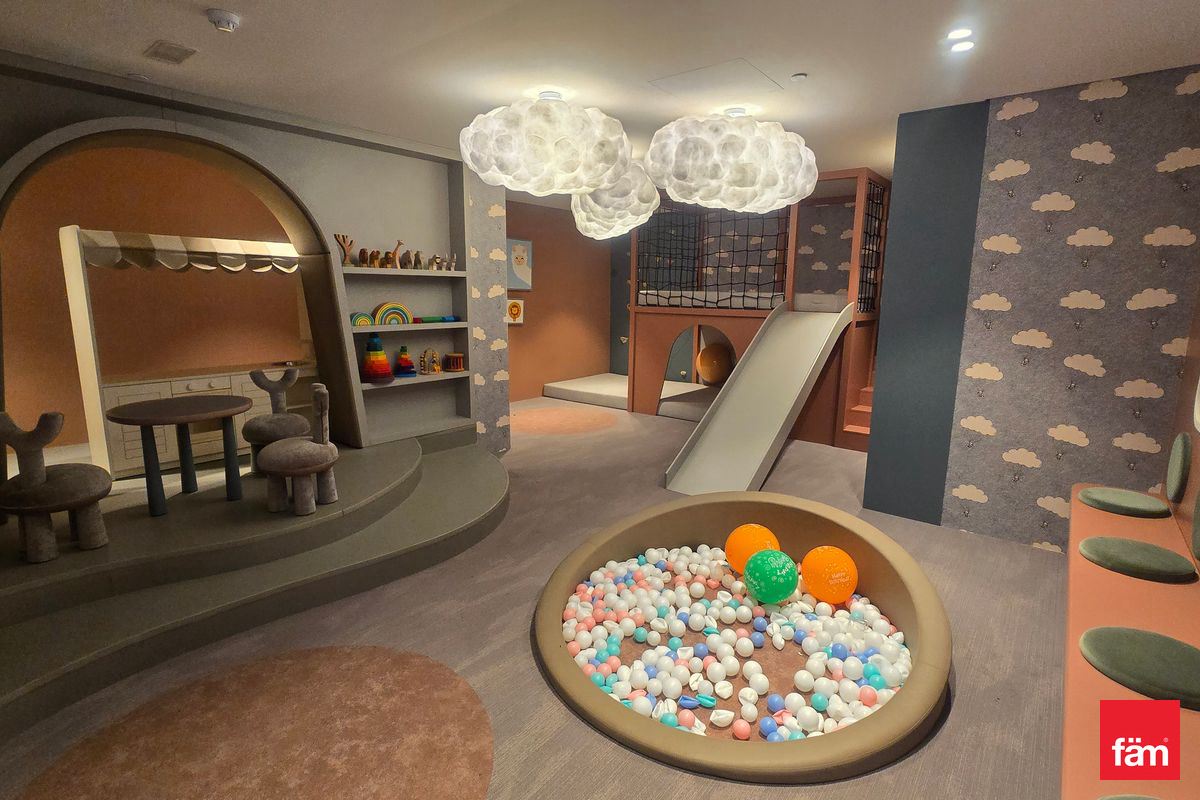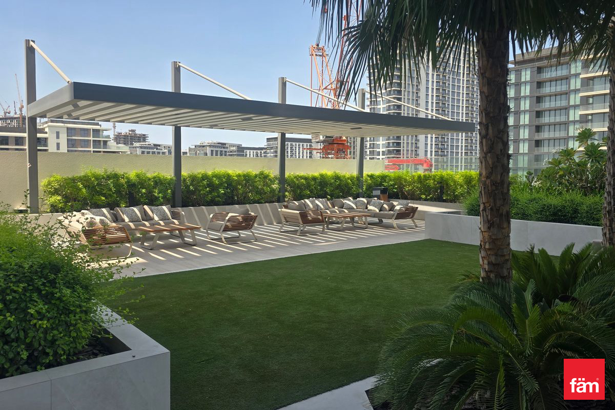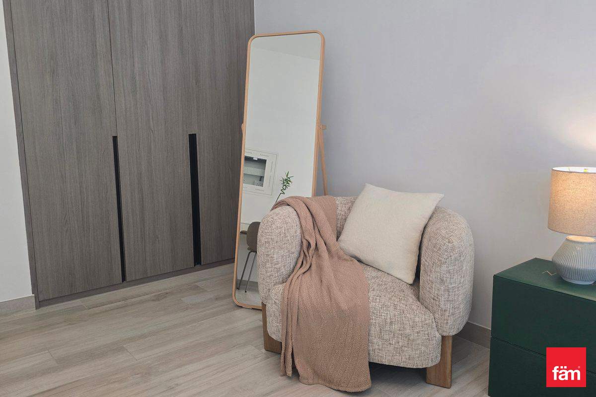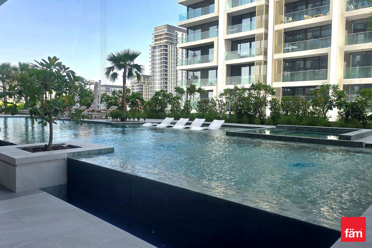 The apartment features built-in wardrobes, central AC, and kitchen appliances. Located in a family-friendly community, residents benefit from proximity to top schools like GEMS International School and Kings School, and convenient access to Dubai Hills Mall.