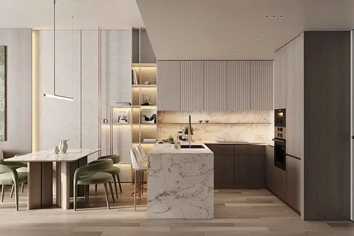 Cove Edition 3 at Dubailand is the third phase of the luxury residential series developed by Imtiaz Developments, lined with premium selection of studios, 1 & 2 bedroom apartments. The luxury class sophisticated development features a robust structure with two basement levels, a ground level, and multiple residential floors, and a rooftop, curated with comfort and durability. Designed to provide a tranquil sanctuary, each residence boasts soft tones, ambient lighting, and premium finishes, creating a serene ambiance perfect for unwinding. The warm gold accents, sleek wood details, and expansive windows establish a seamless connection between urban luxury and natural beauty.