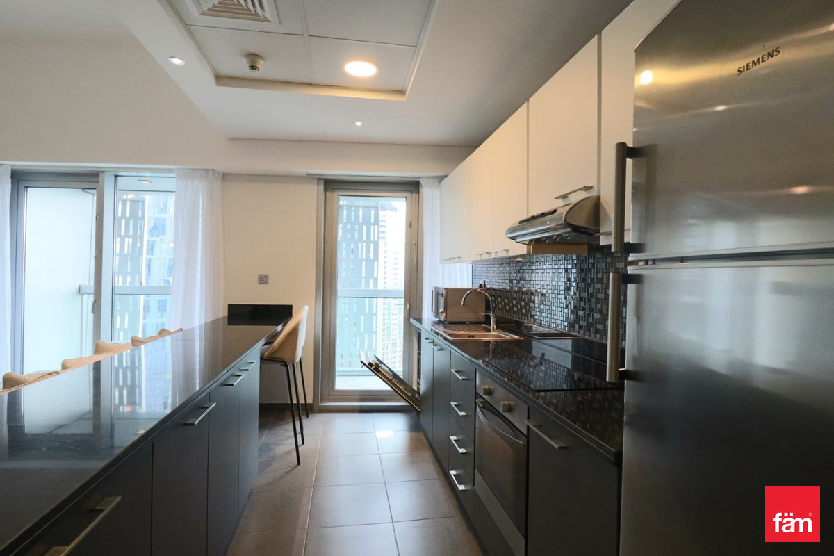 This sleek, renovated 2-bedroom apartment in Cayan Tower offers a modern living experience with stunning ocean and sea views. Fully furnished and equipped, it features built-in wardrobes, walk-in closet, open kitchen with appliances, laundry room, and a balcony to enjoy the serene surroundings.