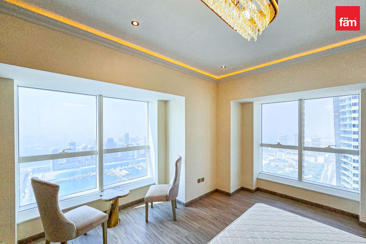 Situated on a high floor, this penthouse offers stunning waterfront views and is conveniently located close to the metro, Marina Mall, and the American University in Dubai. With upgraded features, pantry, and air conditioning, this penthouse is the epitome of luxury living in Dubai.
