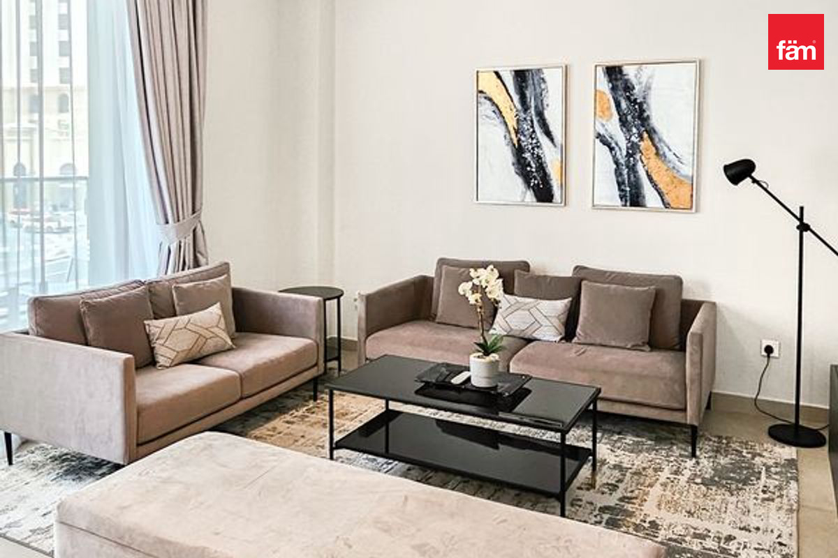 fäm Properties proudly presents this well-maintained, fully furnished 1 Bedroom apartment in Sparkle Towers, offering comfort, style, and a prime waterfront lifestyle.