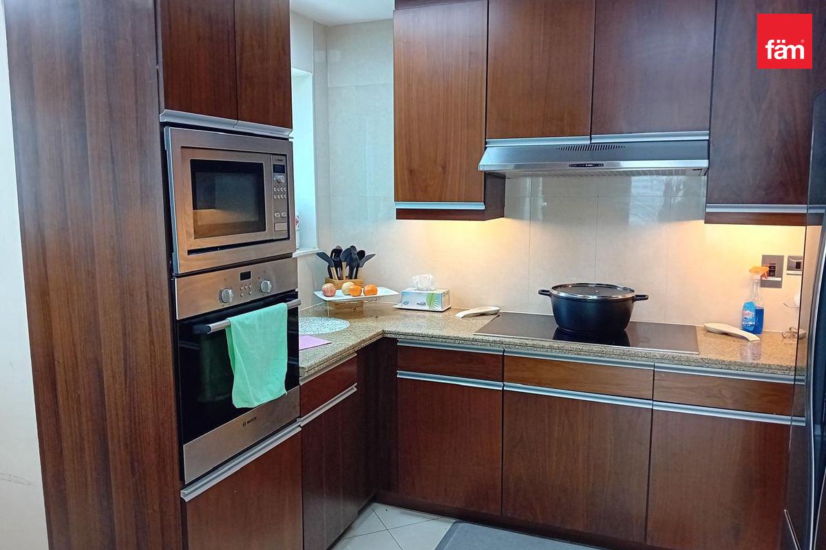 Designed for both comfort and functionality, the property includes built-in wardrobes, kitchen appliances, a maid’s room, and a walk-in closet, complemented by an open-plan kitchen, central air conditioning, and elevator access.