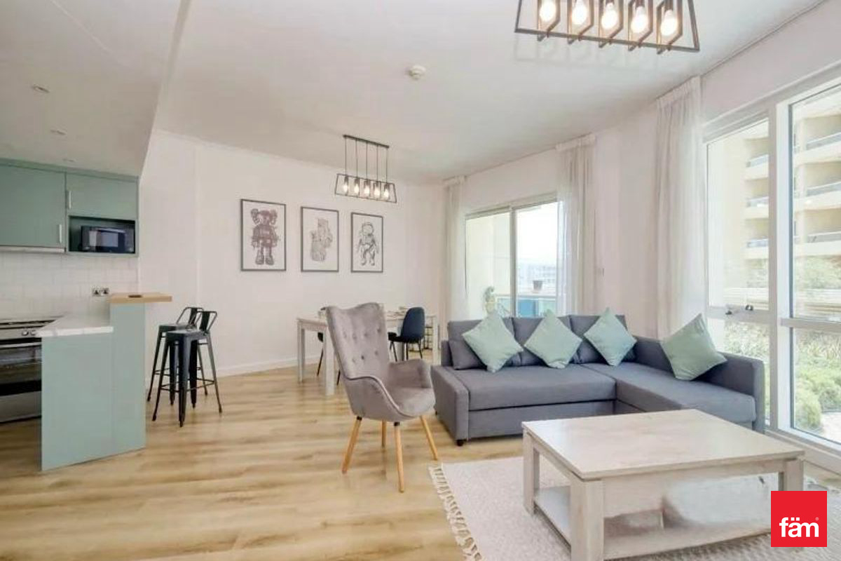 Presented by fäm Properties, this fully furnished 2-bedroom apartment is now available for rent in the prestigious Lago Vista A community, Dubai Production City (IMPZ). This spacious and elegantly renovated apartment offers a comfortable living environment with modern finishes throughout. The unit features built-in wardrobes, a fully fitted kitchen with appliances, air conditioning, and a private balcony overlooking the serene community. Amenities Include: Built-in Wardrobes Balcony Elevator Access Furnished and Renovated Interiors Shared Gym and Swimming Pool 24/7 Security 2 Covered Parking Barbeque Area Lobby in Building Children’s Play Area Lago Vista A provides a secure and family-friendly environment with comprehensive facilities designed for your comfort and convenience. For more information or to arrange a viewing, please contact fäm Properties today.