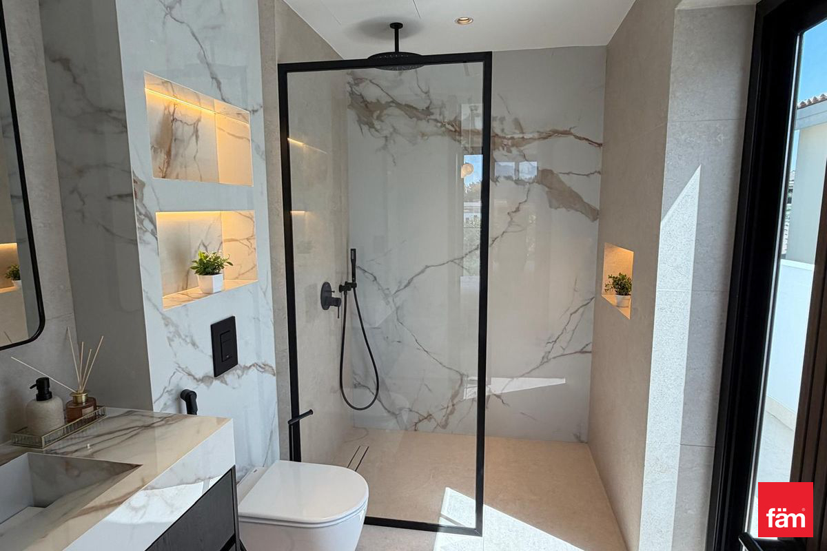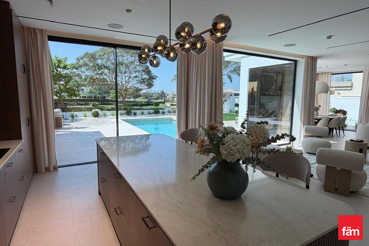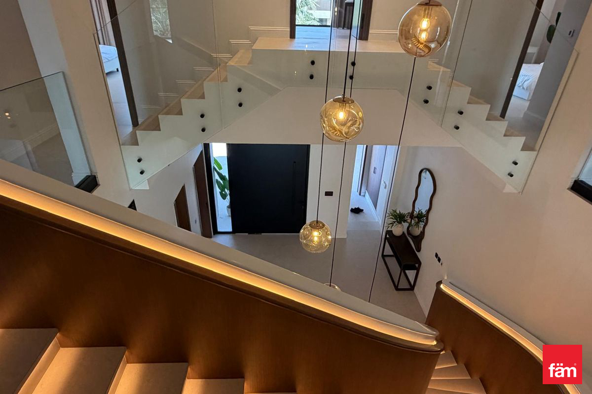 fäm Properties is pleased to present this exceptional 5-bedroom villa located in the prestigious Sanctuary Falls community within Jumeirah Golf Estates (JGE), Dubai. Spanning an impressive 7,912.23 sq.ft., this furnished residence offers an unparalleled living experience with sophisticated design and premium amenities.
