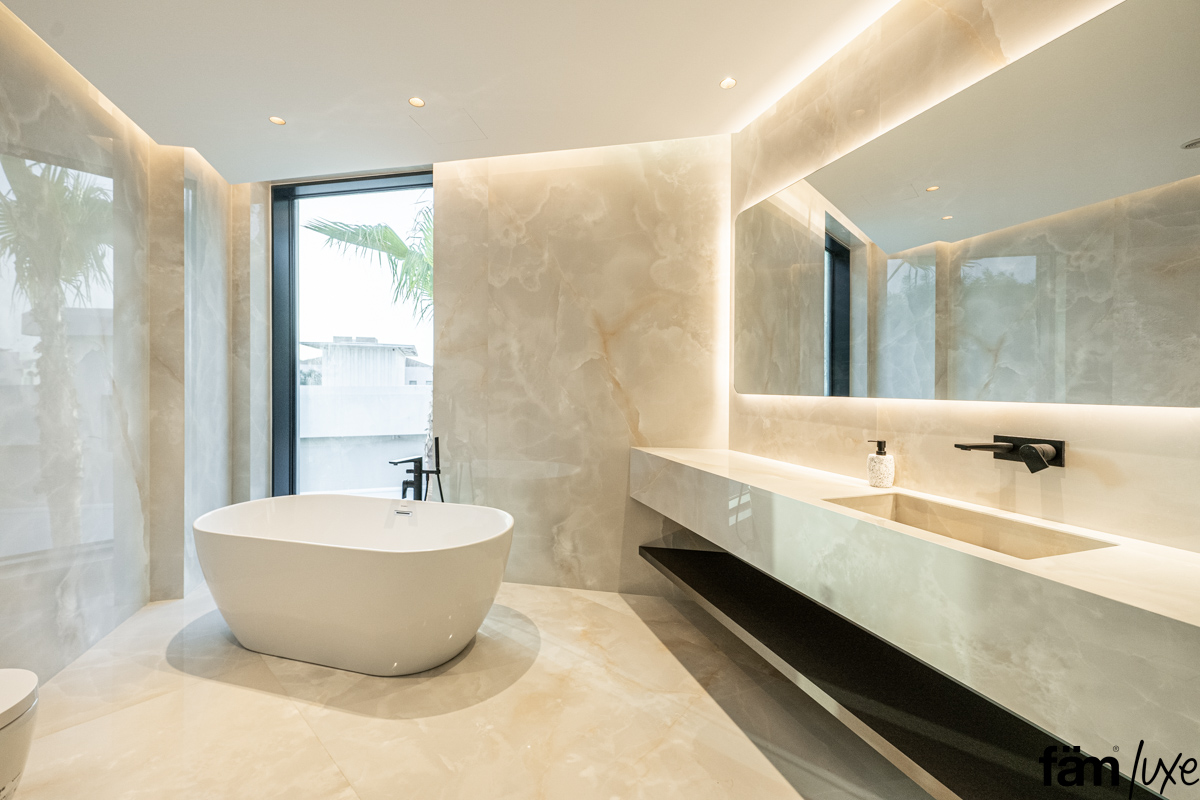 • Tiles: High-quality porcelain tiles for a sophisticated look