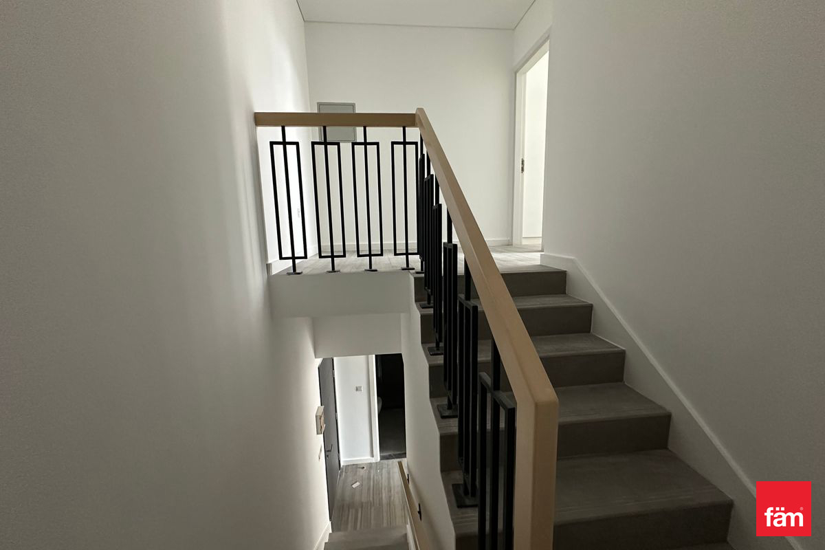 This elegant apartment features four bathrooms and a thoughtfully designed layout that includes built-in wardrobes, walk-in closets, a study room, maid’s room, storage room, laundry room, and a private balcony overlooking the serene community. The open kitchen comes fully fitted with modern appliances and a pantry, catering to all your culinary needs.