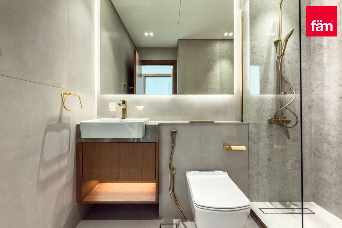 The generously sized bedroom is a private retreat, complete with built-in wardrobes and access to a stylish en-suite bathroom with premium fixtures and fittings. A separate guest powder room adds convenience for residents and visitors alike.