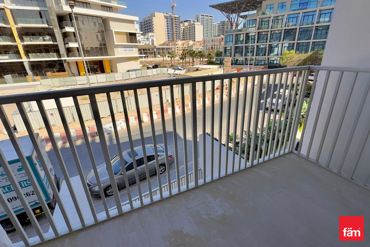 This well-appointed studio features a modern open kitchen equipped with quality kitchen appliances, a private balcony offering serene community views, and a spacious living area. The apartment is fully furnished and benefits from air conditioning, providing comfort throughout the year.