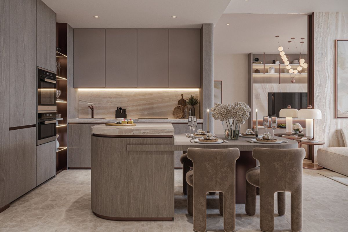 Open Kitchen: A sleek, modern design equipped with high-quality finishes, seamlessly flowing into the living area.