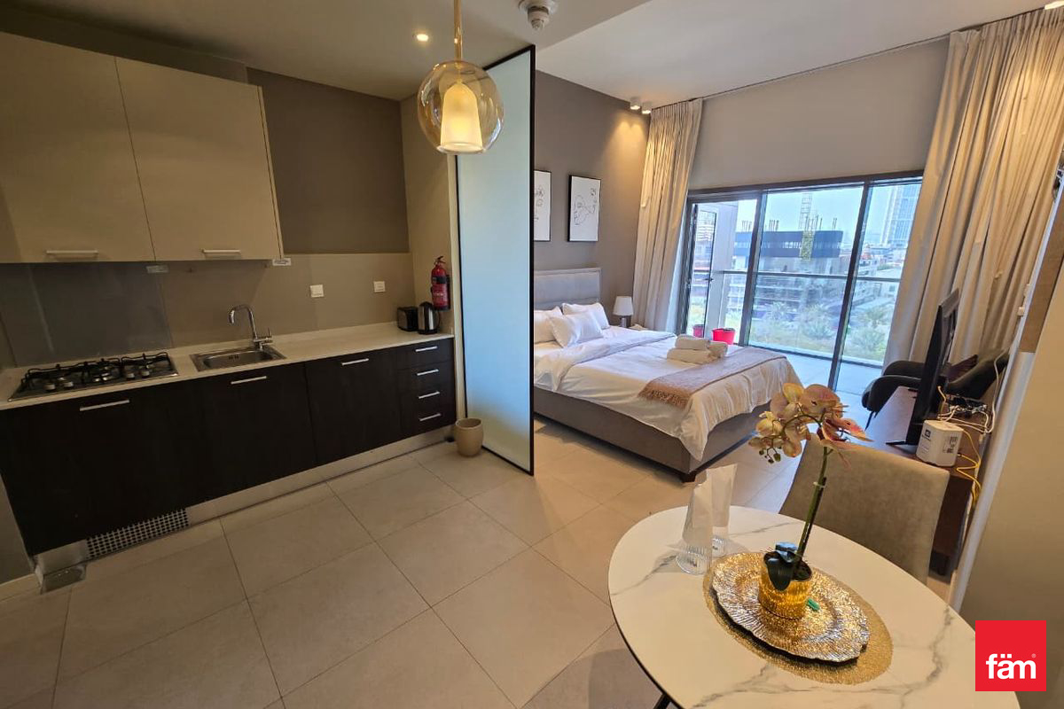 fäm Properties is pleased to present this fully furnished studio apartment located in the prestigious Park View Tower, Jumeirah Village Circle (JVC). With a spacious area of 471.89 sqft, this residence offers a comfortable and modern living space at a competitive rental price of AED 64,000 per annum.