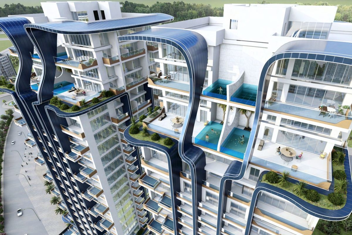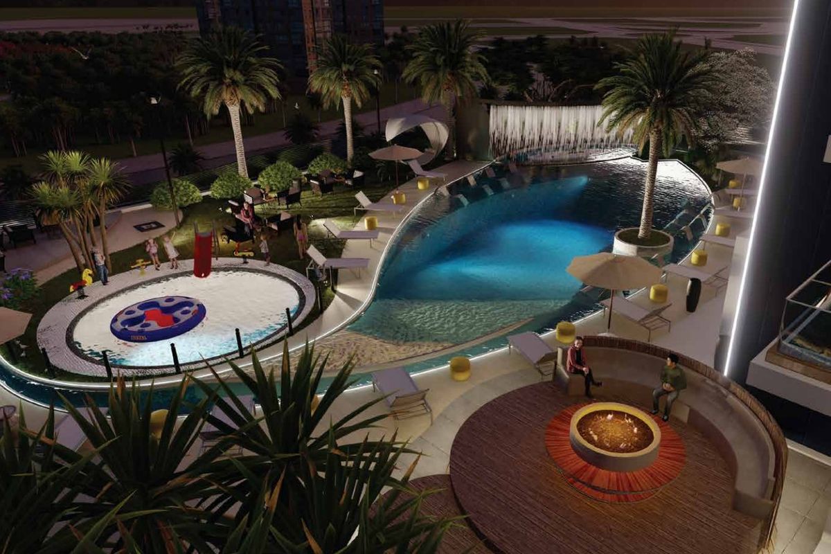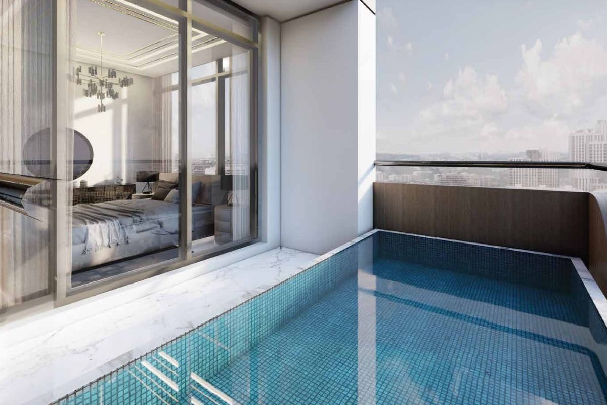 Spacious High middle-floor layout with a balcony and private pool