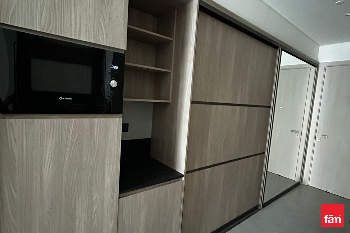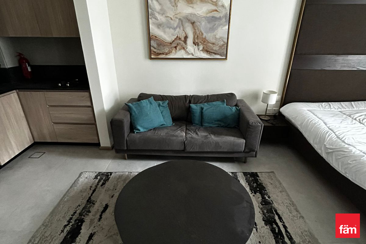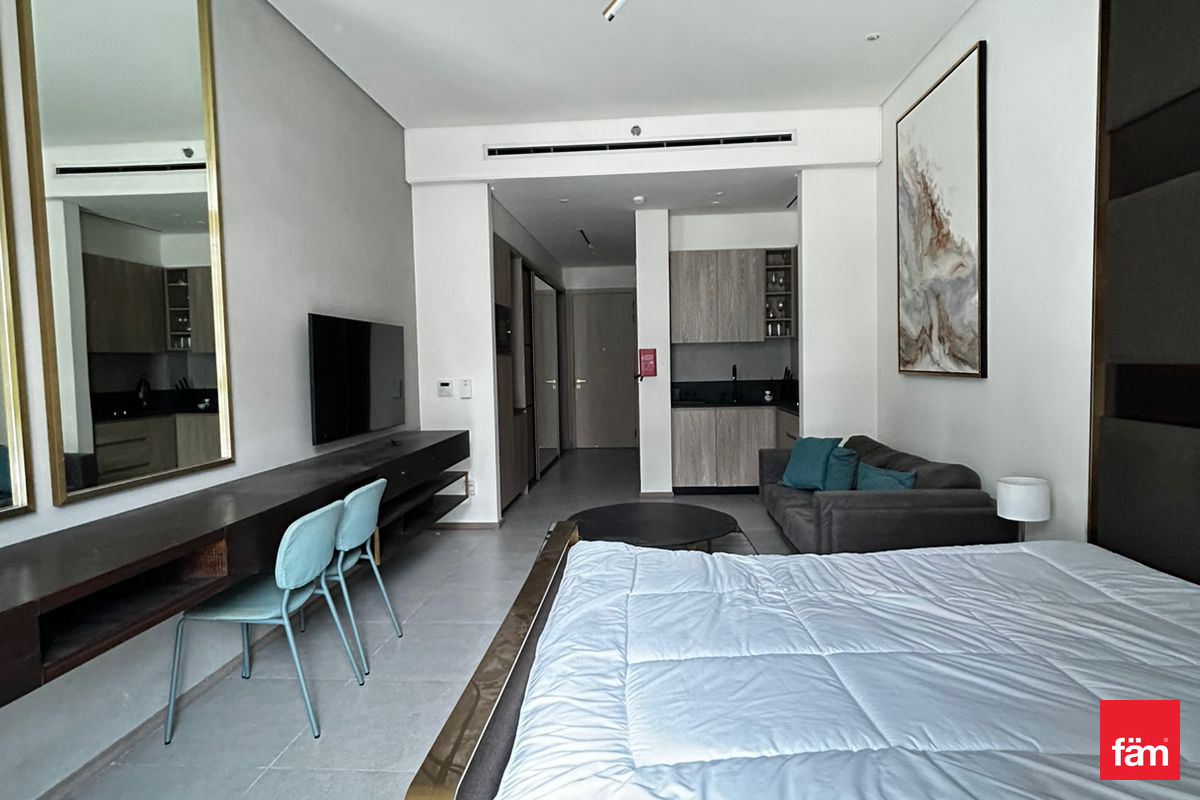 This furnished studio apartment for rent is located in Signature Livings North, Jumeirah Village Circle (JVC). Positioned on a lower floor, it offers an efficient open-plan layout combining sleeping and living spaces, with modern finishes throughout. Full-height windows and a private balcony provide natural light and views over the surrounding community and nearby buildings. Key Amenities & Features: - Studio apartment layout with integrated living and sleeping area - Fully furnished with bed, sofa seating and storage - Private balcony/terrace with community and street views - Open-plan kitchenette with overhead and base cabinets - Large floor-to-ceiling windows for natural light - Tiled flooring in all main areas - Access to building swimming pool - Residential building in Signature Livings North, JVC Additional Property Features: - Downtown city and courtyard view from selected angles - Pool and road/street views from the building - Neutral contemporary interior decor - Built-in wardrobe/closet near entrance - Desk/console setup suitable for work or study - Wall-mounted TV provision in bedroom area - Seating area with sofa and coffee table - Sheer curtains and sliding glass doors to balcony - Secure residential environment - Residential usage in a community setting Located in Signature Livings North within JVC District 10, this apartment benefits from a community-focused environment with mixed residential developments. Jumeirah Village Circle offers access to nearby retail, basic services and landscaped areas. The location connects to key Dubai roads, providing access to other major districts and destinations across the city.