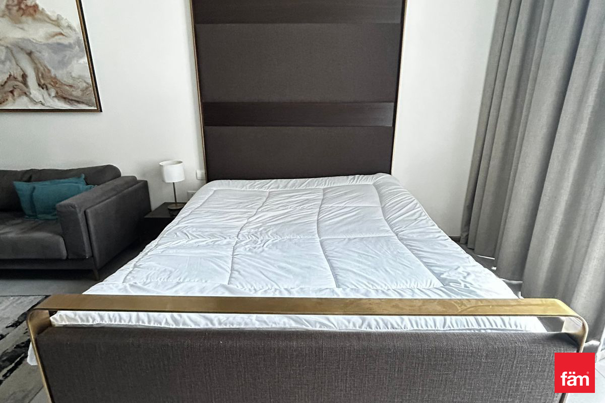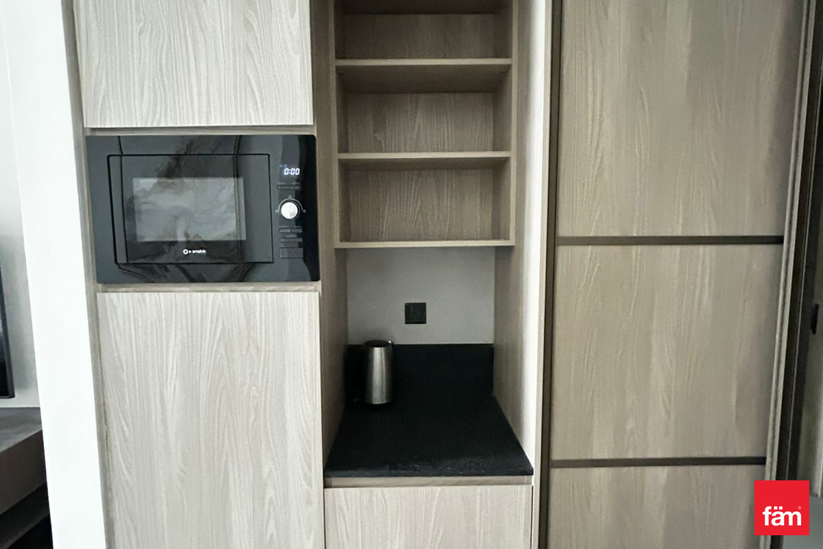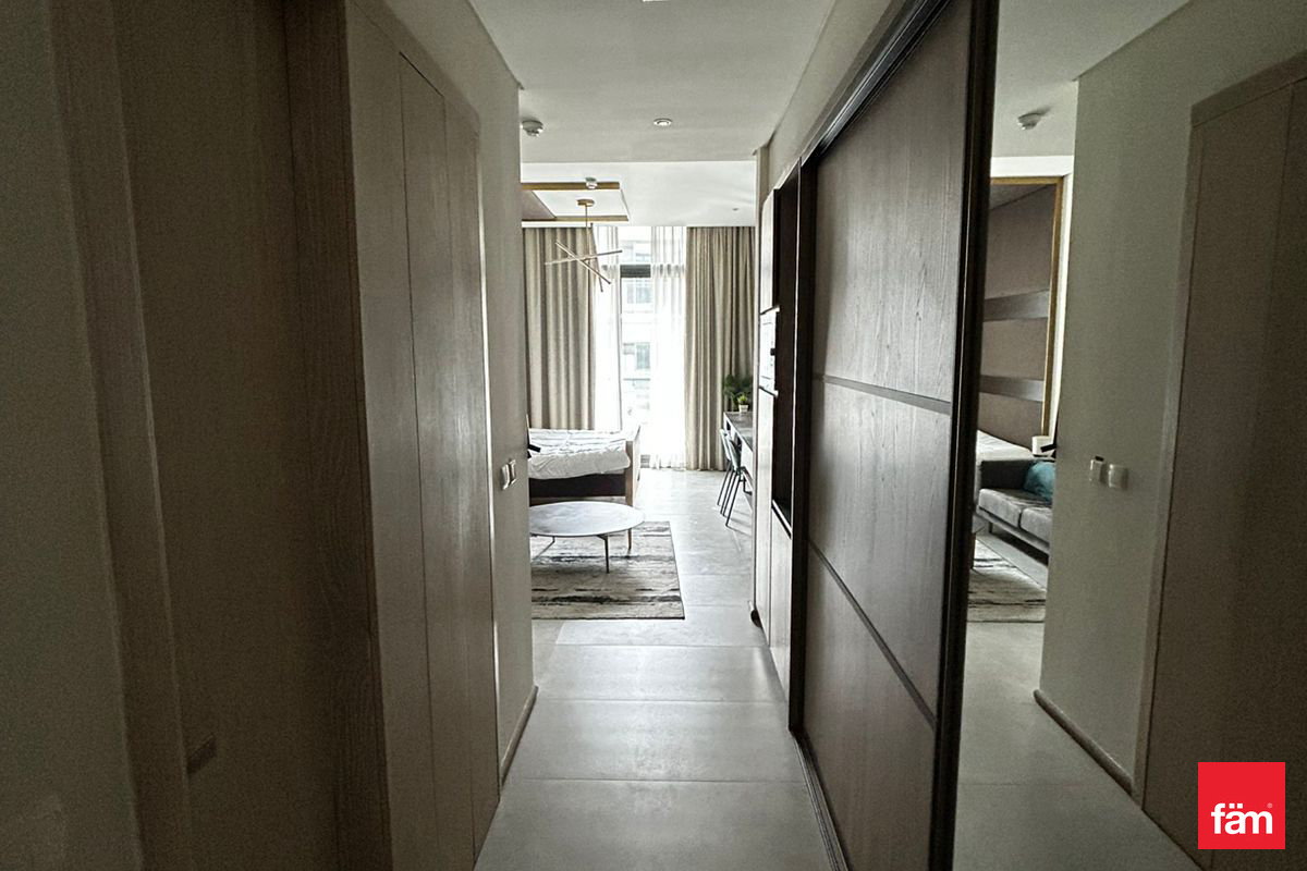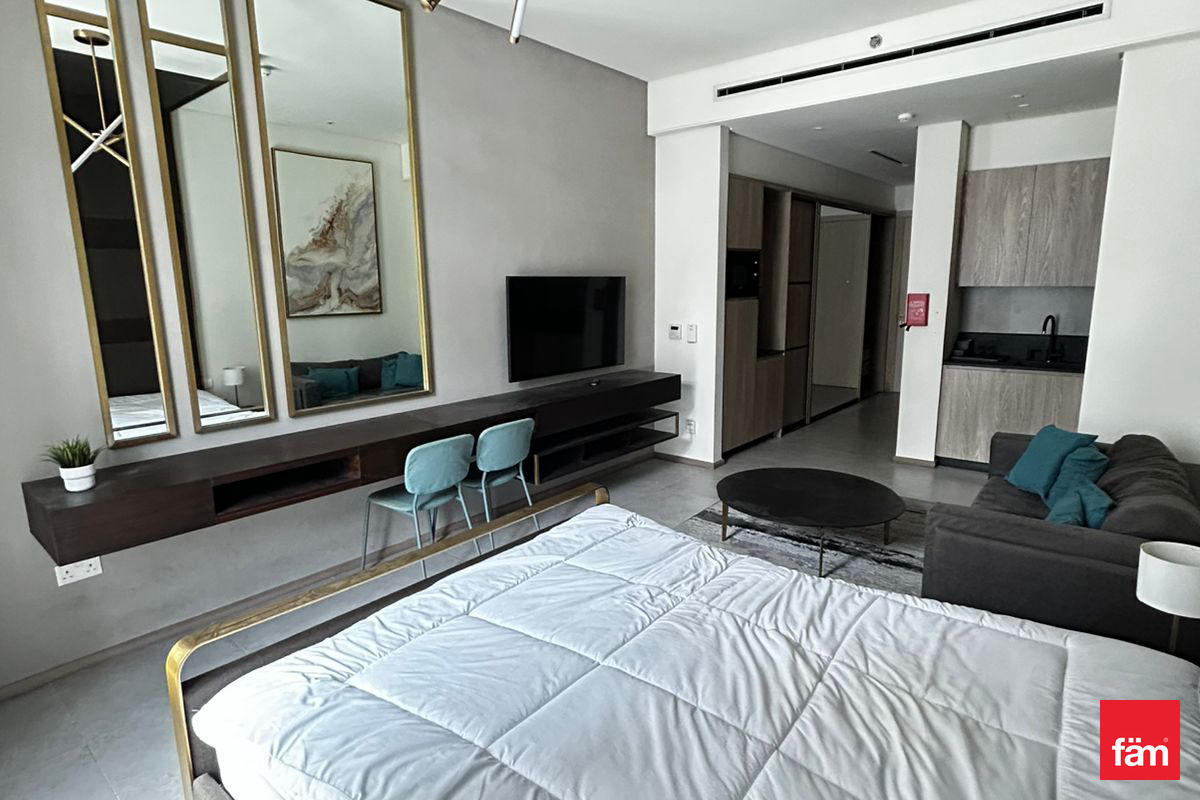 This furnished studio apartment for rent is located in Signature Livings North, Jumeirah Village Circle (JVC). Positioned on a lower floor, it offers an efficient open-plan layout combining sleeping and living spaces, with modern finishes throughout. Full-height windows and a private balcony provide natural light and views over the surrounding community and nearby buildings. Key Amenities & Features: - Studio apartment layout with integrated living and sleeping area - Fully furnished with bed, sofa seating and storage - Private balcony/terrace with community and street views - Open-plan kitchenette with overhead and base cabinets - Large floor-to-ceiling windows for natural light - Tiled flooring in all main areas - Access to building swimming pool - Residential building in Signature Livings North, JVC Additional Property Features: - Downtown city and courtyard view from selected angles - Pool and road/street views from the building - Neutral contemporary interior decor - Built-in wardrobe/closet near entrance - Desk/console setup suitable for work or study - Wall-mounted TV provision in bedroom area - Seating area with sofa and coffee table - Sheer curtains and sliding glass doors to balcony - Secure residential environment - Residential usage in a community setting Located in Signature Livings North within JVC District 10, this apartment benefits from a community-focused environment with mixed residential developments. Jumeirah Village Circle offers access to nearby retail, basic services and landscaped areas. The location connects to key Dubai roads, providing access to other major districts and destinations across the city.