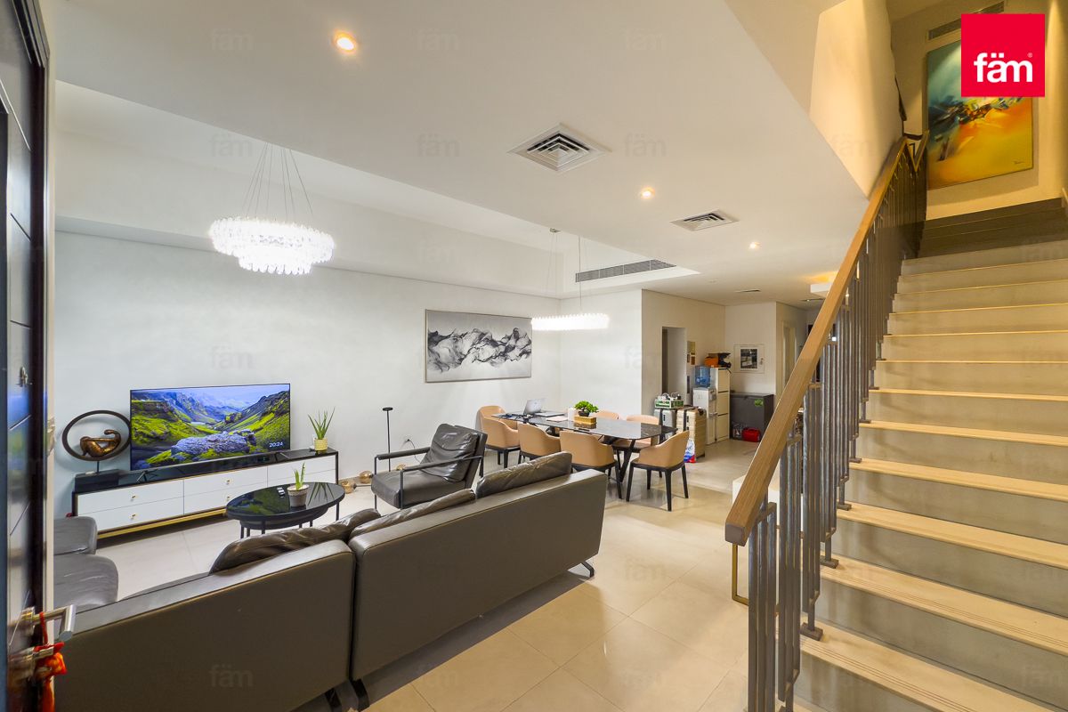 fäm Properties is pleased to present this luxury 4 bedroom plus maid townhouse in Somerset Mews, JVC. Designed with modern living in mind, this G+2 home features elegant finishes, spacious layouts, and family-friendly amenities.
