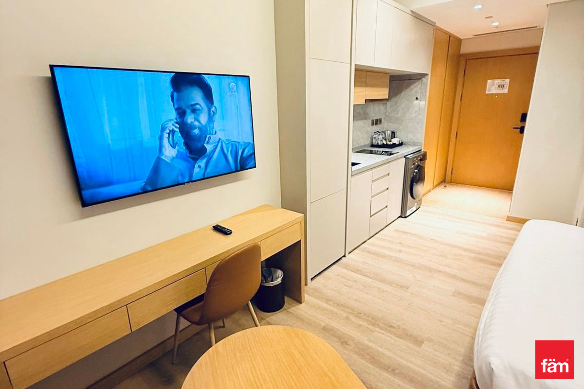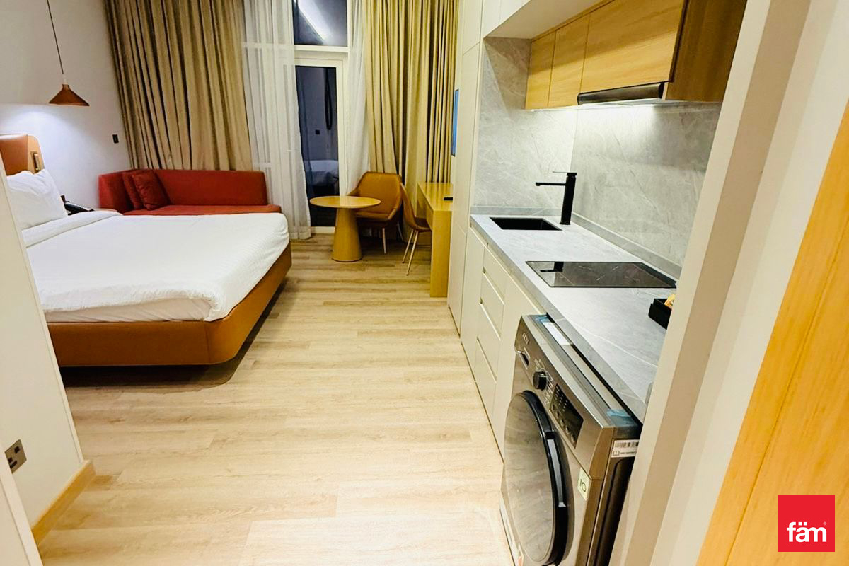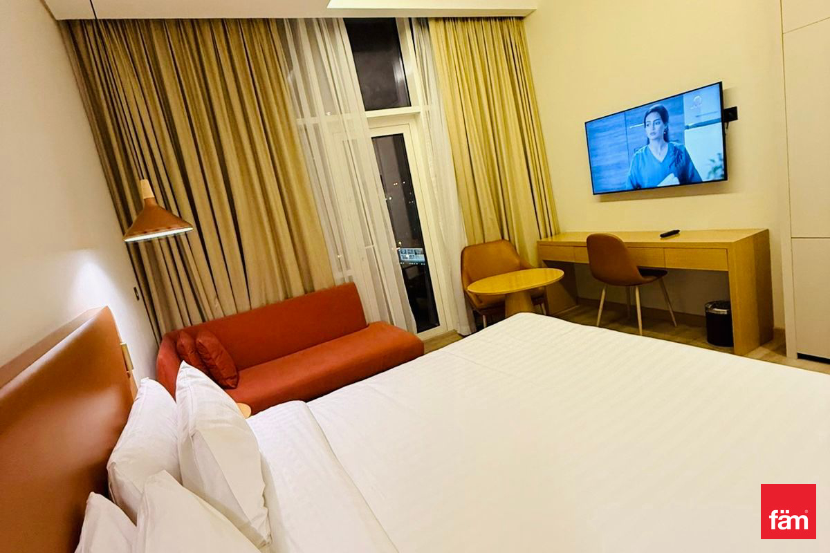 Experience refined living in this elegantly furnished studio located in Terhab Hotel & Towers, Jumeirah Village Triangle.