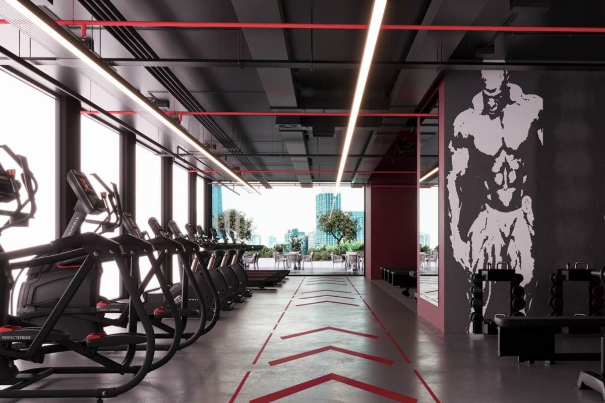 Rooftop gym with panoramic views, designed by a 13-time world champion bodybuilder