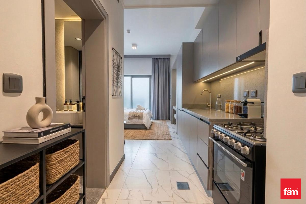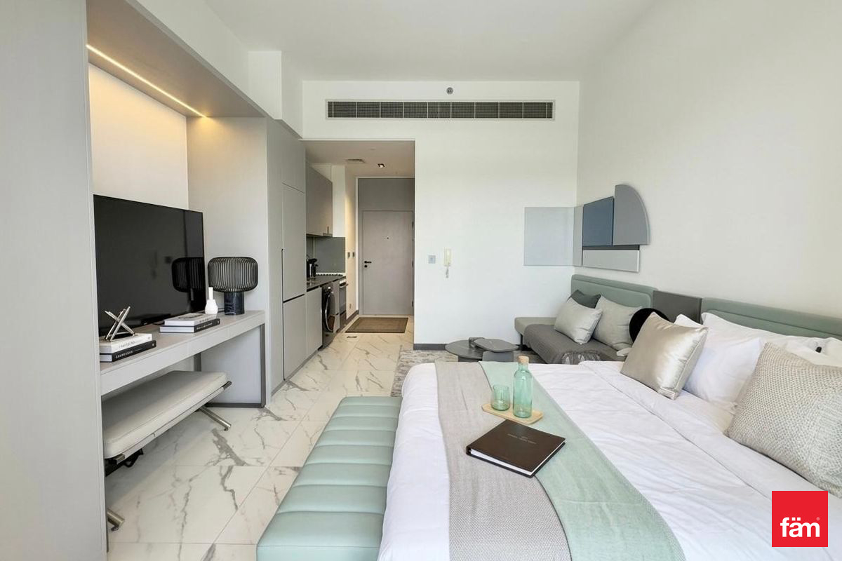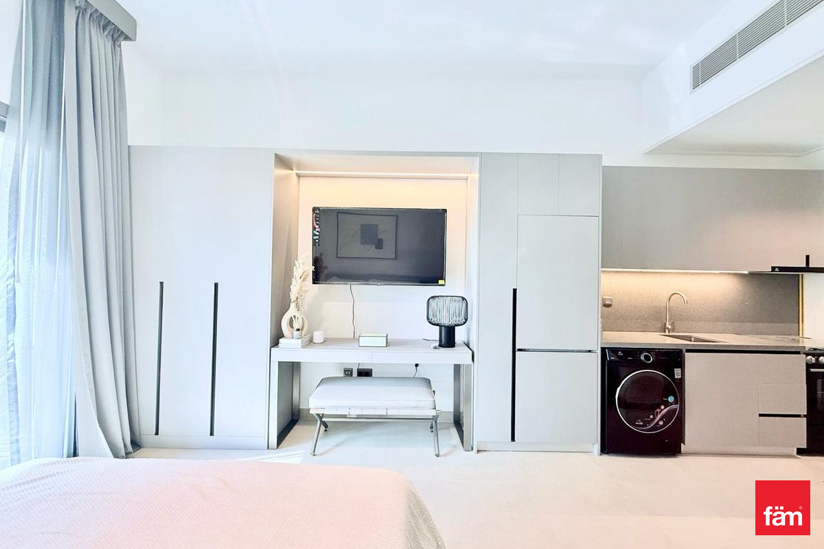 fäm Properties presents this modern, fully furnished studio in MAG Eye, located in the heart of Mohammed Bin Rashid City (District 7).