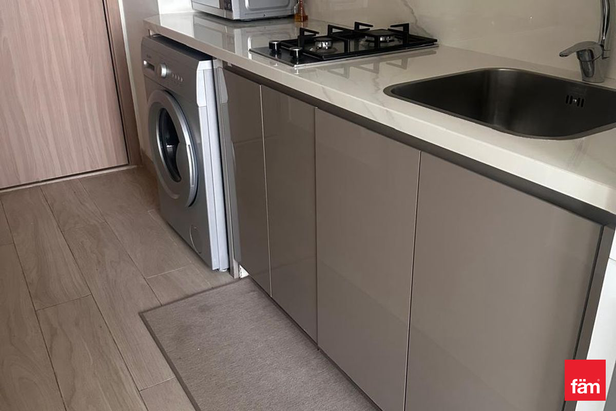 The modern kitchen is fitted with high-quality cabinetry and sleek finishes, while the bathroom is elegantly designed with premium fixtures. The apartment also includes built-in wardrobes and a private balcony, perfect for relaxing and enjoying the community views.
