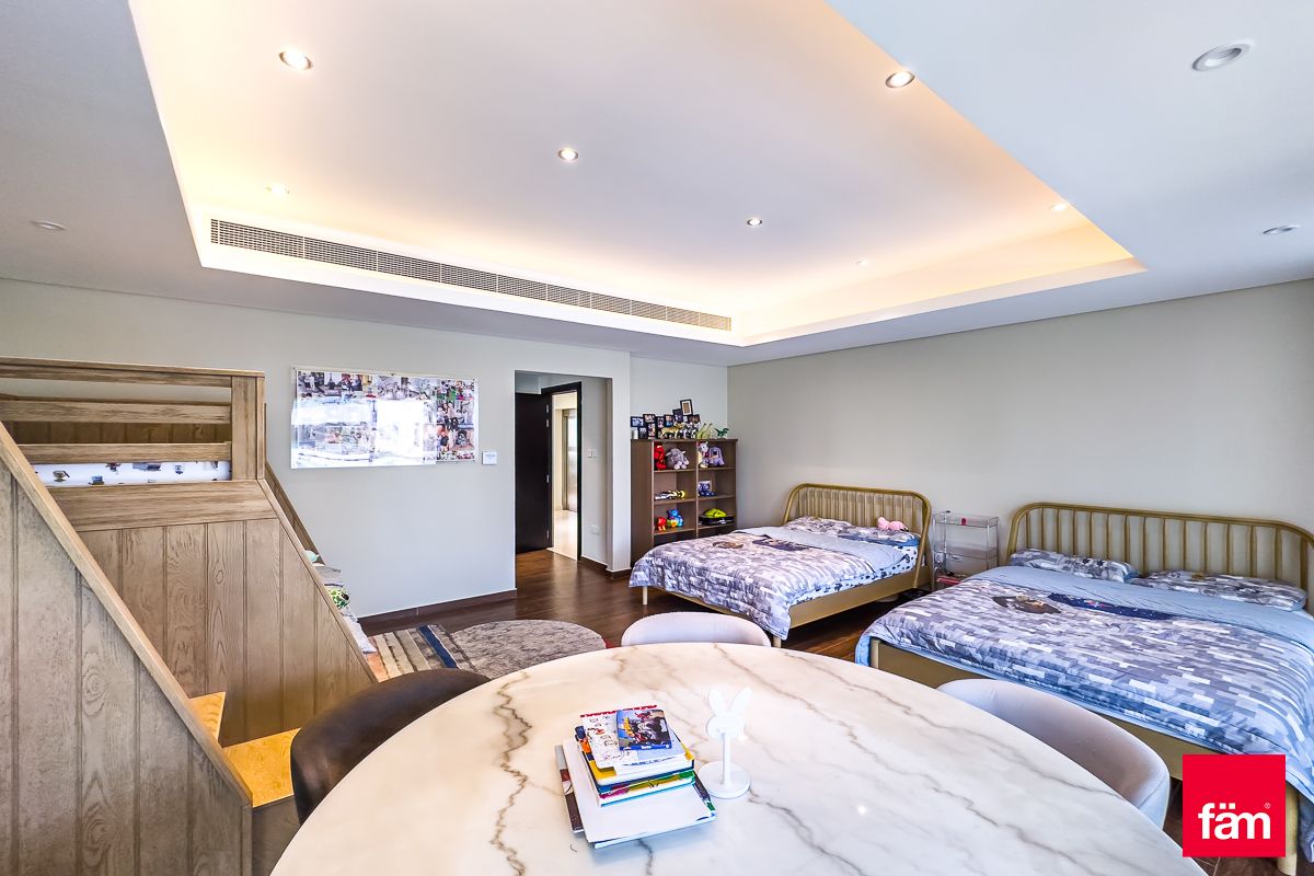 Presented by fäm Properties, the largest and most trusted real estate agency in Dubai, this stunning 6-bedroom villa in the prestigious Grand Views community at Meydan offers an unrivaled lifestyle defined by elegance and sophistication.